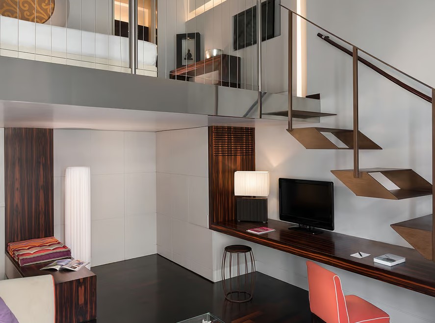 Завдяки великому розміру (приблизно 538 кв. футів) представницький напівлюкс забезпечує максимальний комфорт для 5 гостей. Кімната складається з двох суміжних спалень, обидві з двоспальними ліжками розміру "queen-size", фітнес-кутком, а також елегантною вітальнею, яка ідеально підходить для роботи чи відпочинку після дня, проведеного в Мілані.