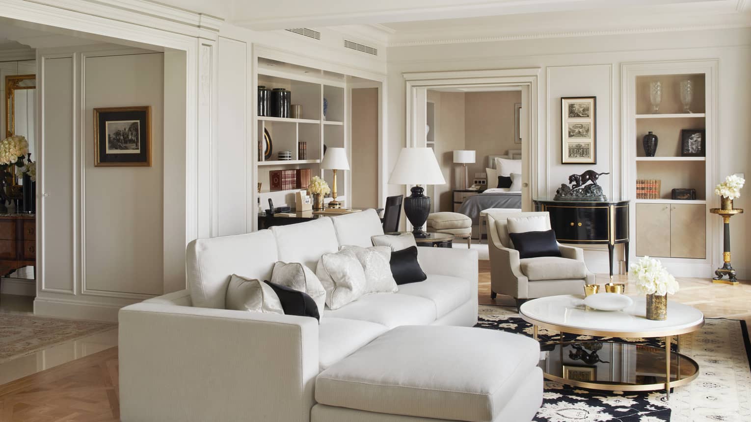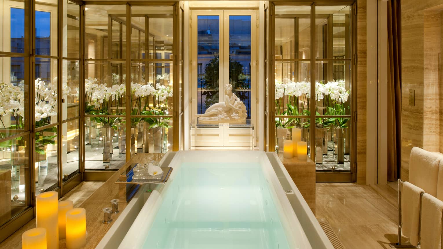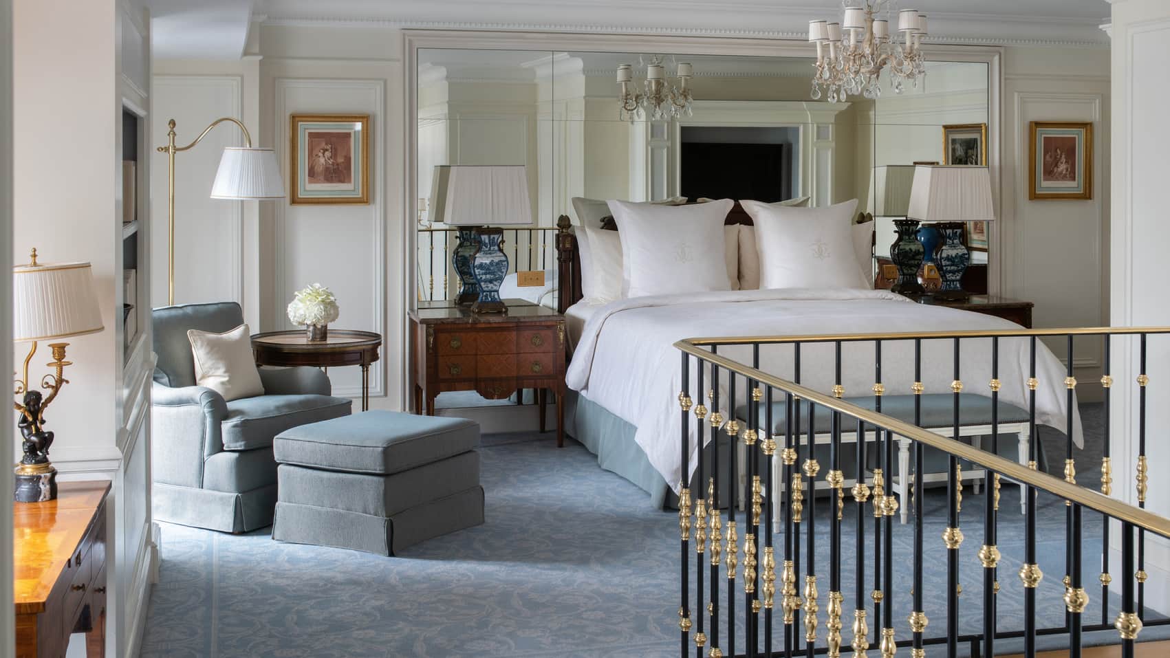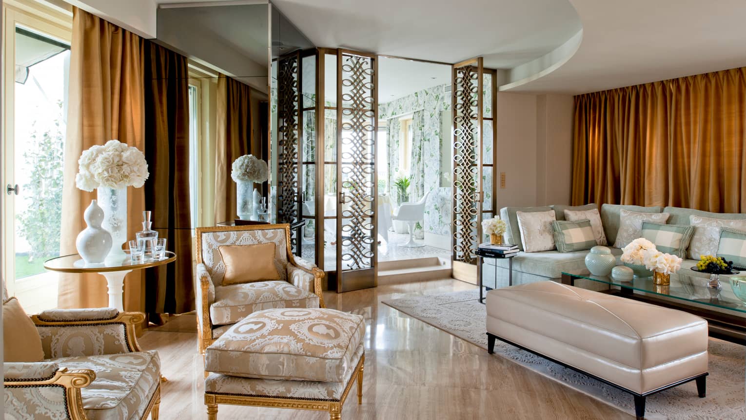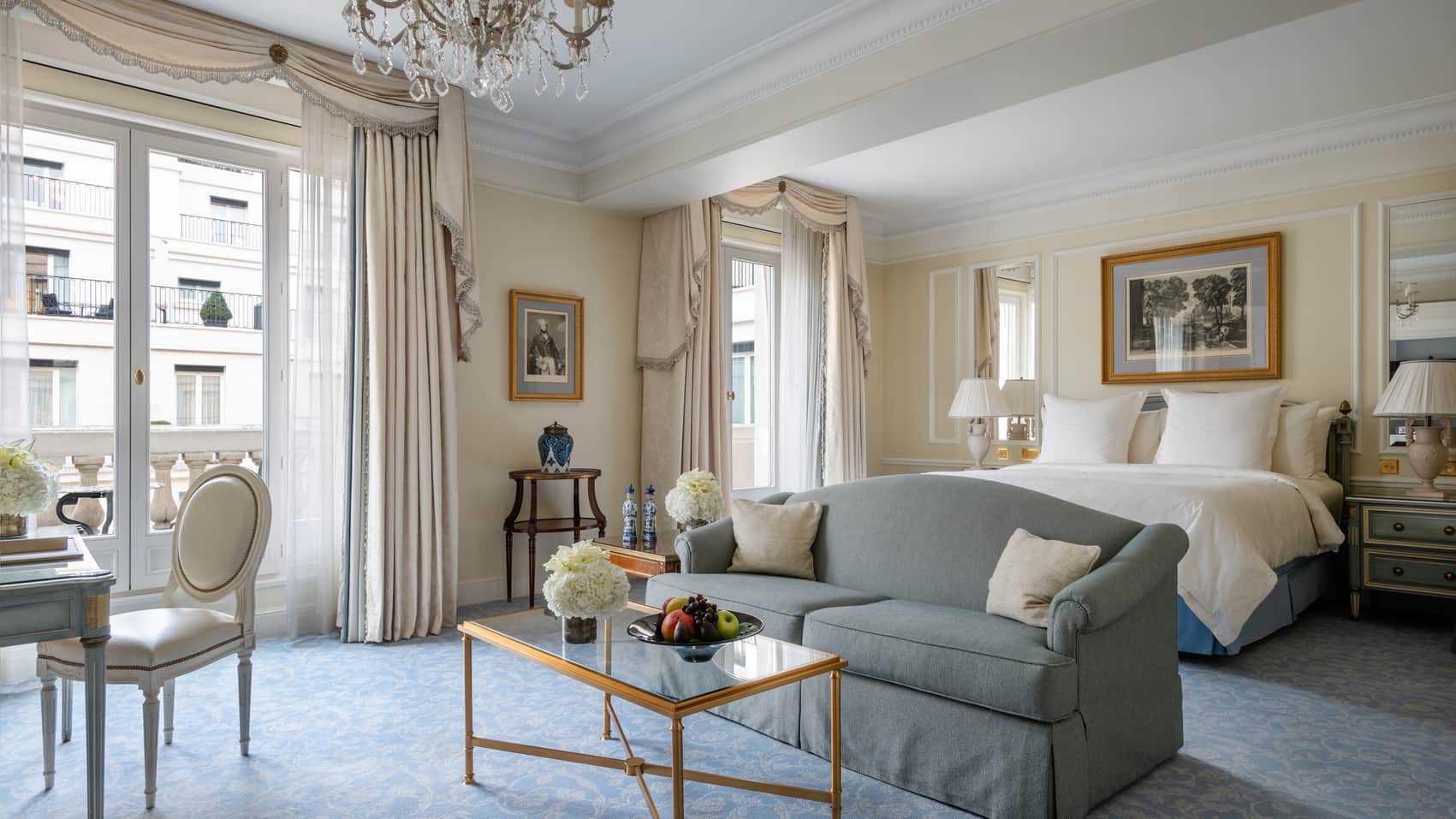 245 кв. м. Розкішні люкси розташовані на 1-му поверсі. Номери складаються з 1-ї або 2-х спалень, гардеробної, вітальні з мармуровим каміном, їдальні (на 8 гостей), кабінету, повністю обладнаної кухні, 1-ї або 2-х ванних кімнат з ванною та окремою душовою кабіною (одна з парової лазнею), гостьового туалету та тераси з видом на історичний фонтан «Трьох грацій» у стилі Арт Деко. Інтер'єри прикрашені старовинними меблями XVIII та XIX ст. Доступне бронювання суміжного номера. Максимальне розміщення: 4 особи.
