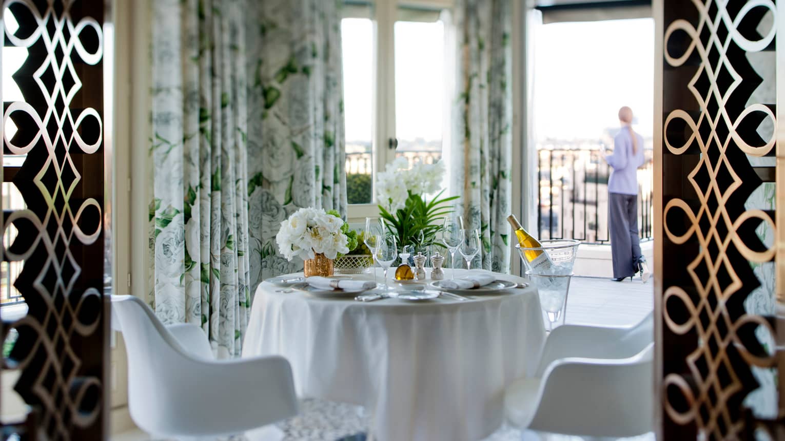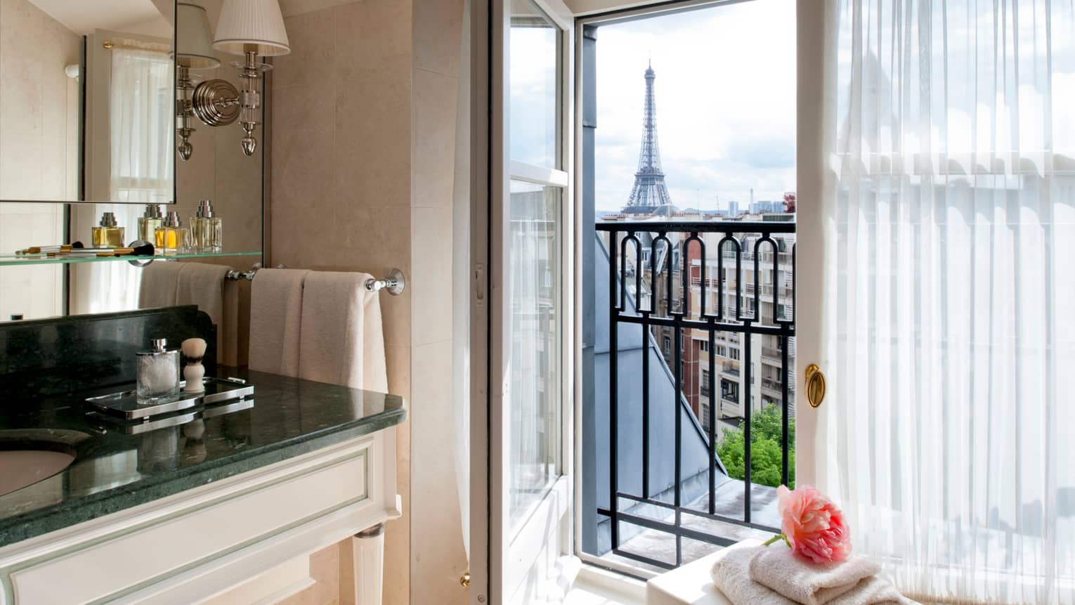 160 кв. м. Шикарний світлий люкс з травертиновими підлогами та декором зі шкіри розташований на 8-му поверсі будівлі готелю. Номер складається зі спальні з ліжком «кing-size», кабінету, вітальні, ванної кімнати з нескінченною ванною зі струменями з системою хромотерапії, що розслаблює, гостьової дамської кімнати, просторого гардеробу. З номера відкривається 360-градусний краєвид на Ейфелеву вежу. Максимальне розміщення: 2 дорослі.