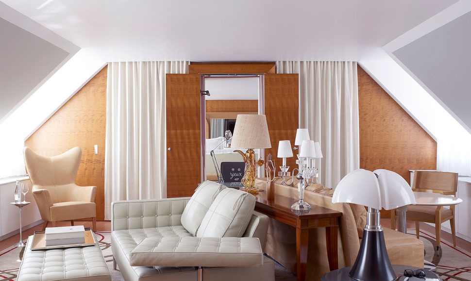 Поєднуючи сувору елегантність дизайну 1940-х і 50-х років з поетичними деталями – книжки, розставлені випадковим чином на полицях, надряпане повідомлення на абажурі – кожен люкс є приватною гаванню розкоші.