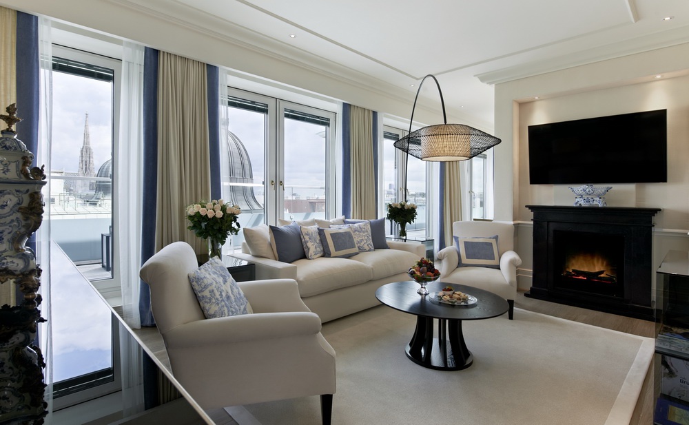 Номер інтернів, створених відомим дизайнером П'єр-Ів Рошон, перетворена розкіш класичного стилю та аристократичної атмосфери імперської епохи. З вікон відкривається чудовий вид на Відень.
