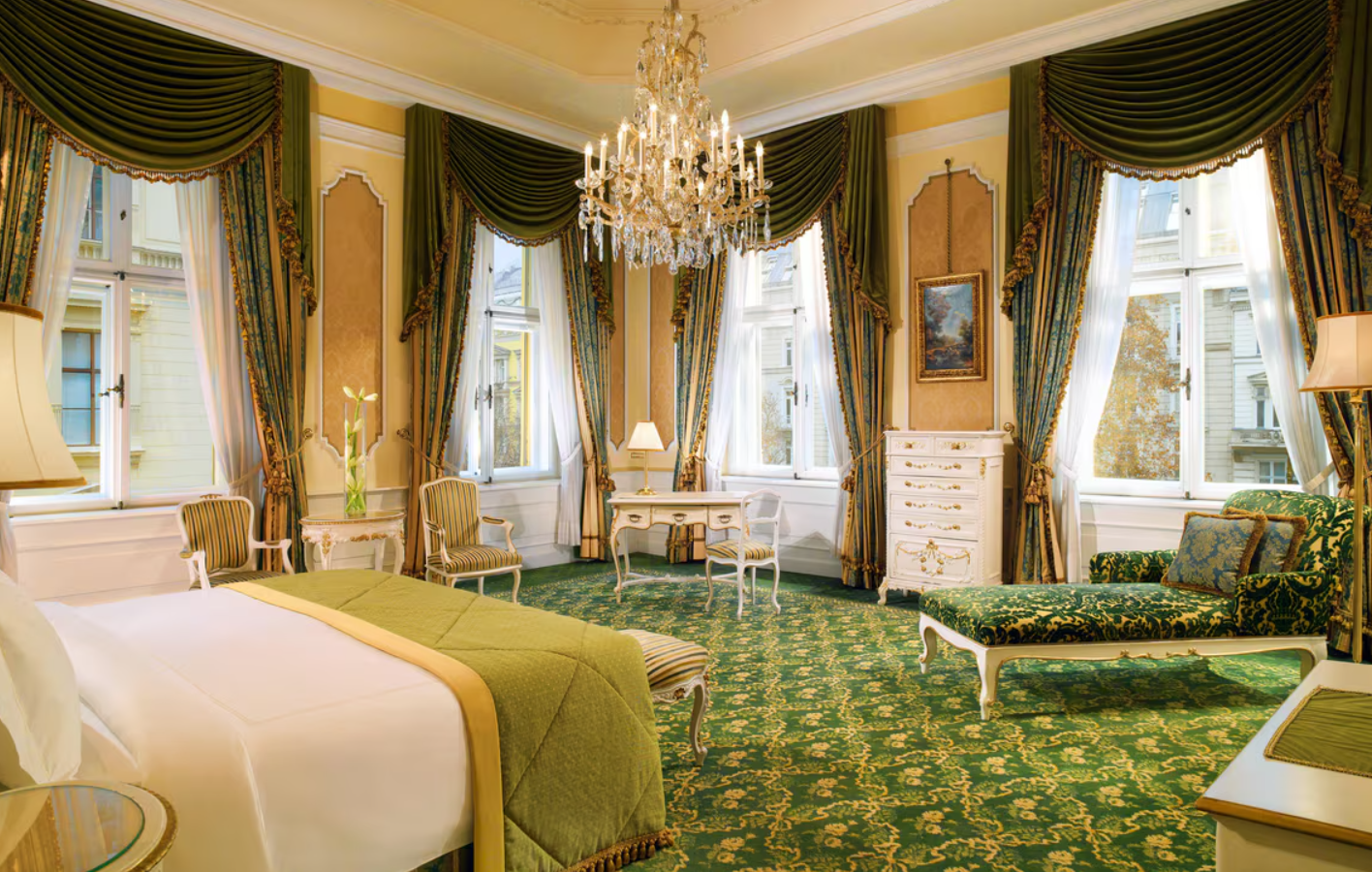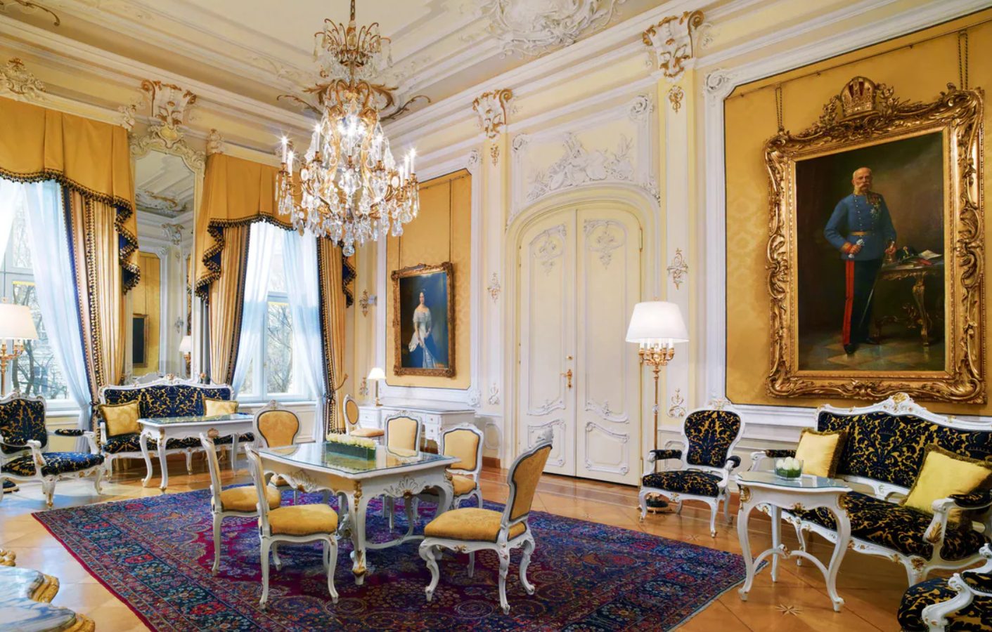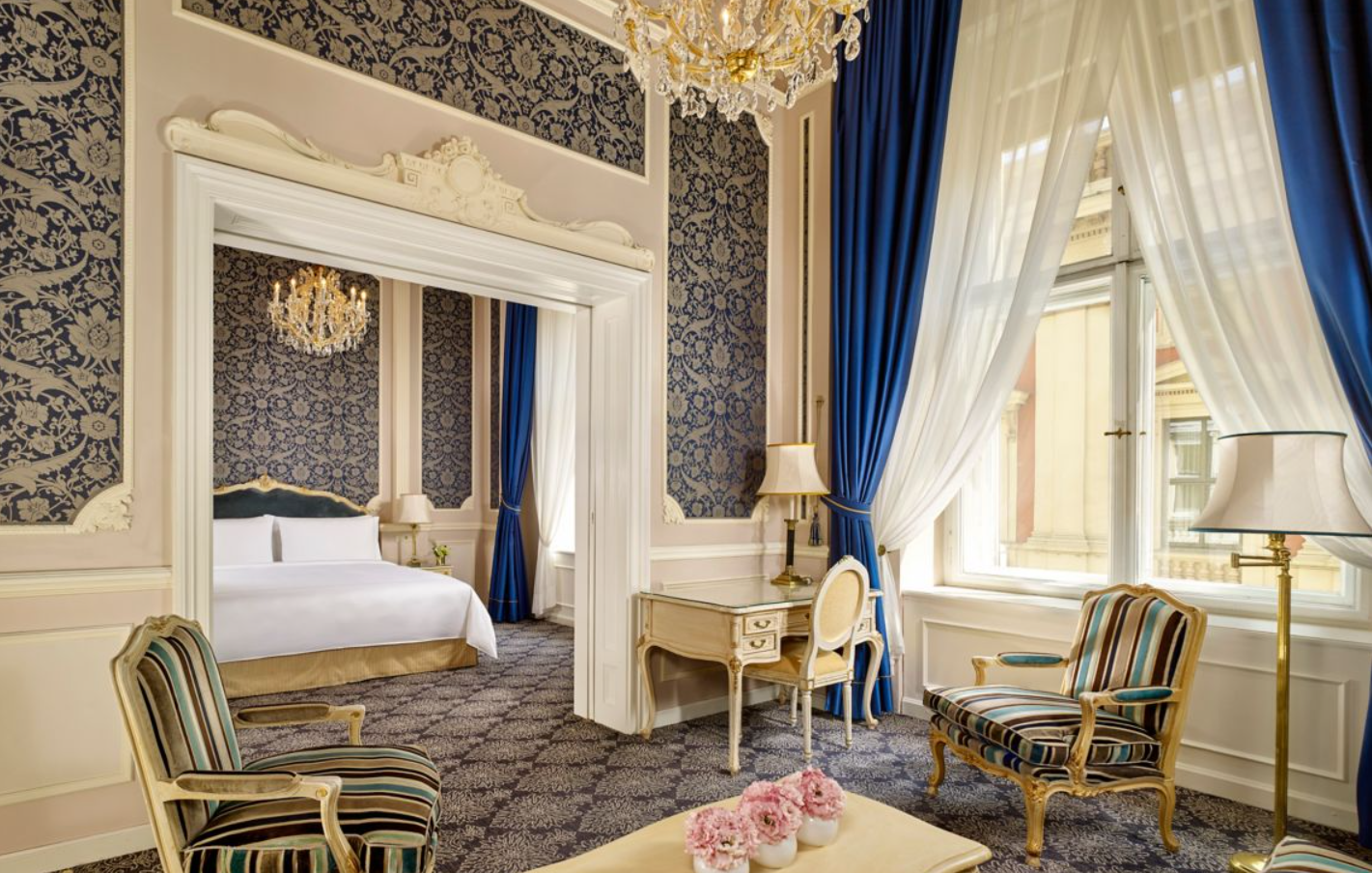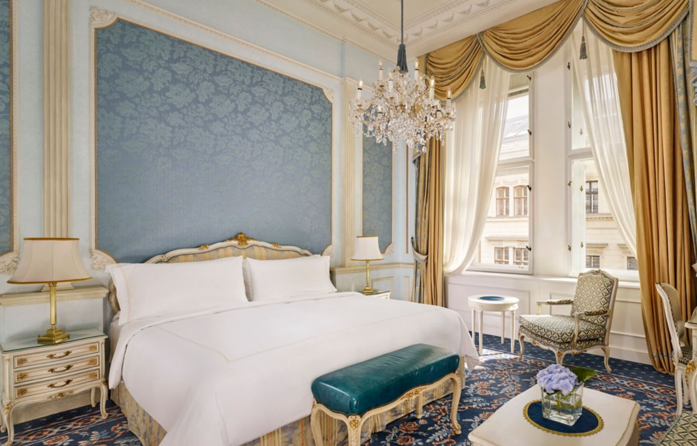 Номери відрізняються використанням антикварних меблів, шовкових стінових покриттів, мармурових ванних кімнат та високих стель. Багато сьют мають окремі вітальні зони і види на історичний центр Відня. Інтер'єри передають атмосферу палацового життя, при цьому оснащені сучасними зручностями та технологіями.