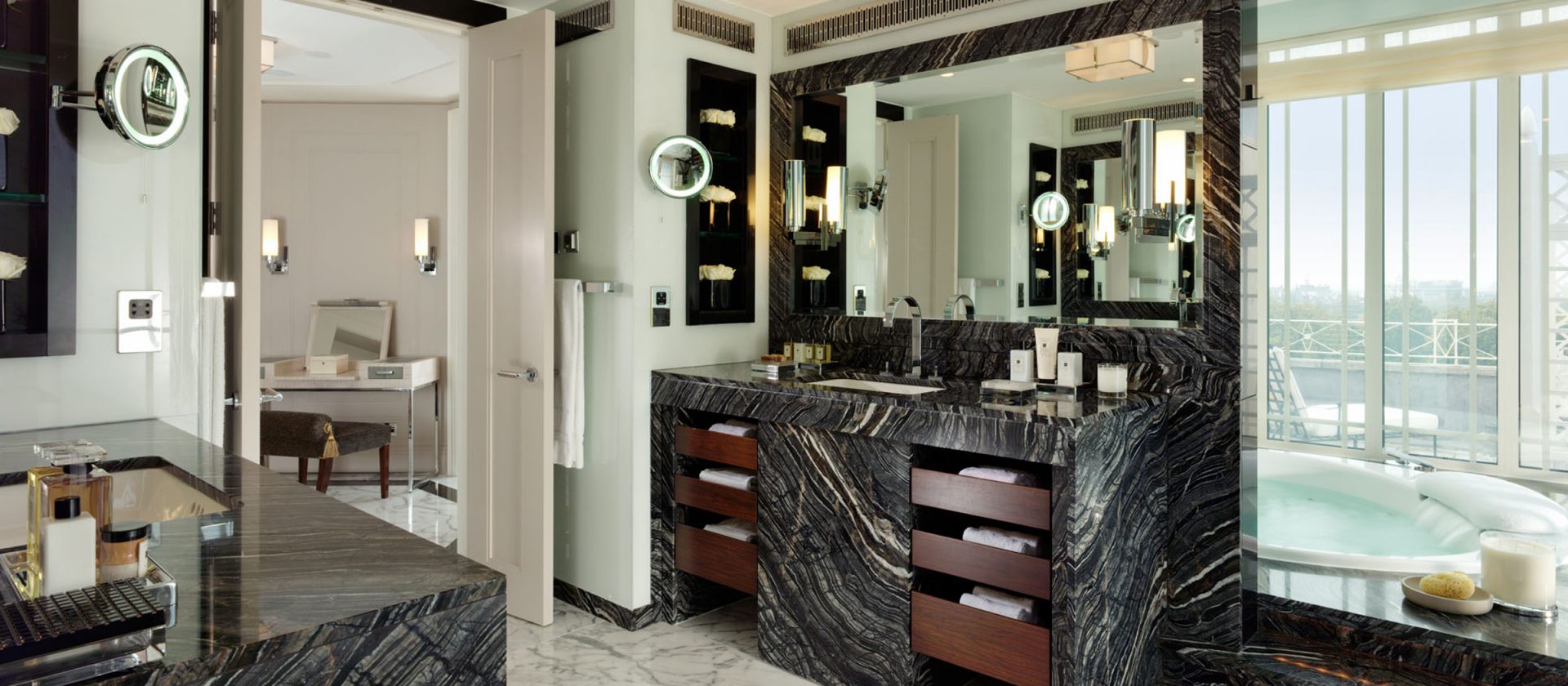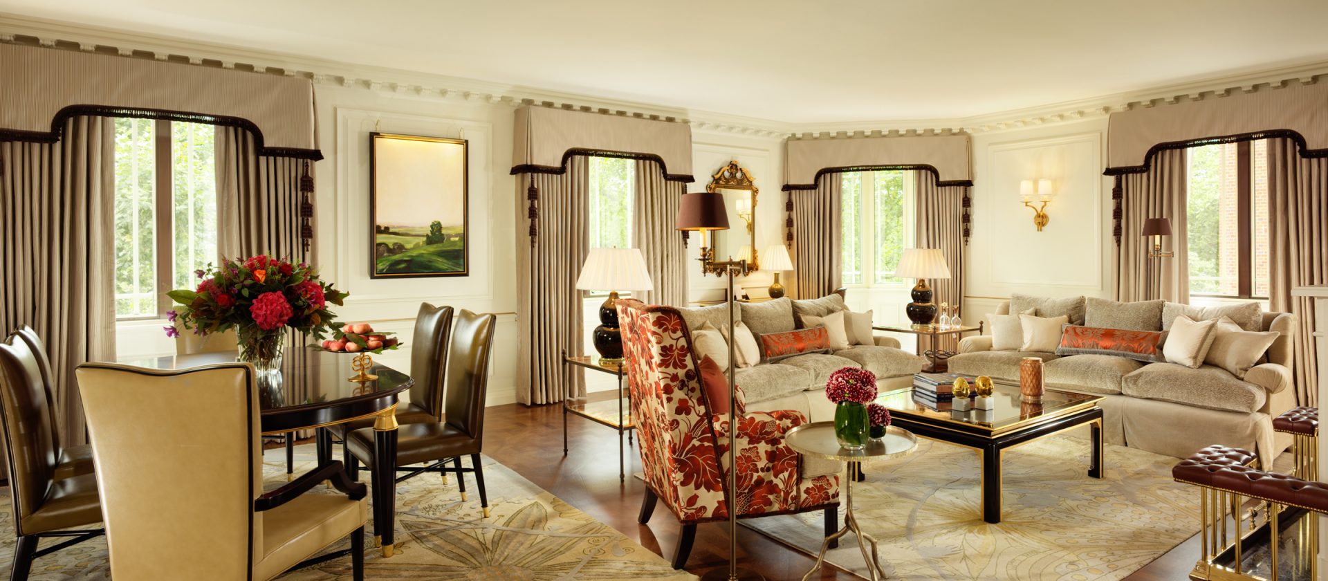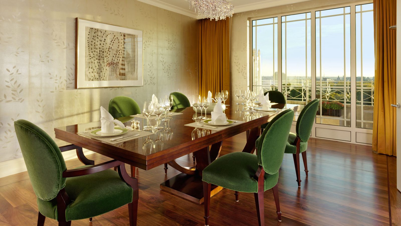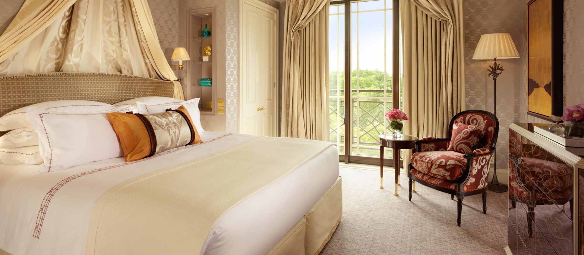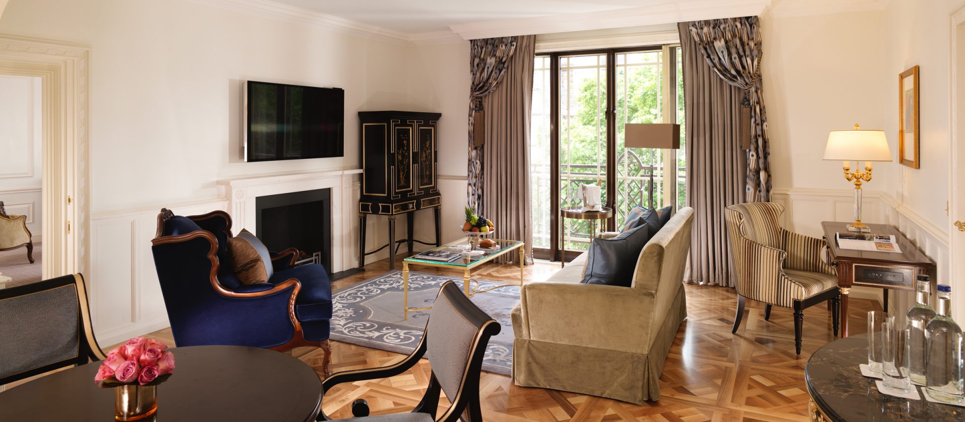 133 кв. м. У 1950-ті рр. Олівець Месель. Marlene Dietrich, Noel Kovard і Sylvester Stallon знаходяться в кімнаті в різні часи. З спальні з ліжком king-size, їдальня, ванна кімната з ванною, подвійна раковина і окрема душова кабіна, гостьова ванна кімната, шафа, тераса з видом на Mayfair і Hyde Park. У палаці і бронюванні суміжного люксу доступні. Місце: 2 чол.