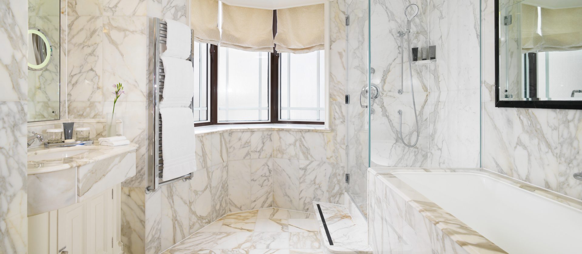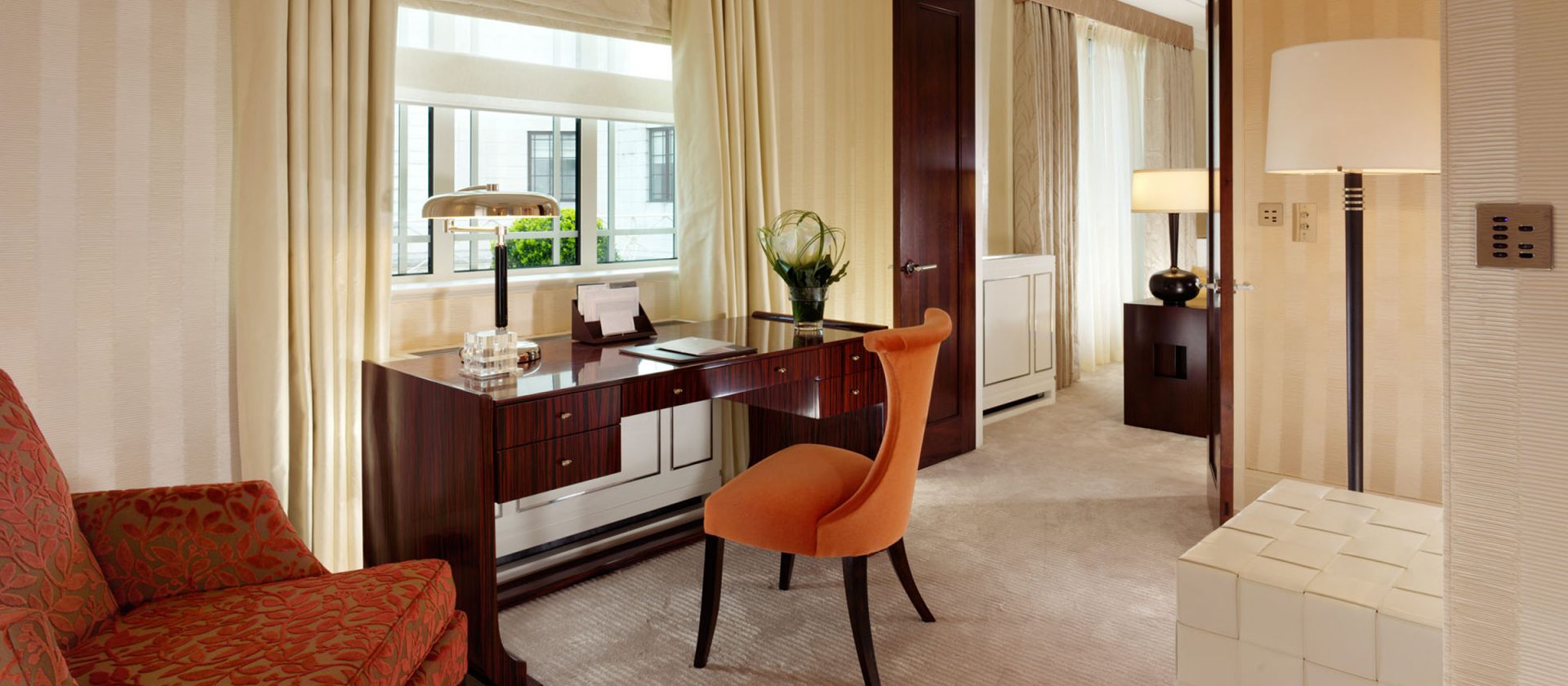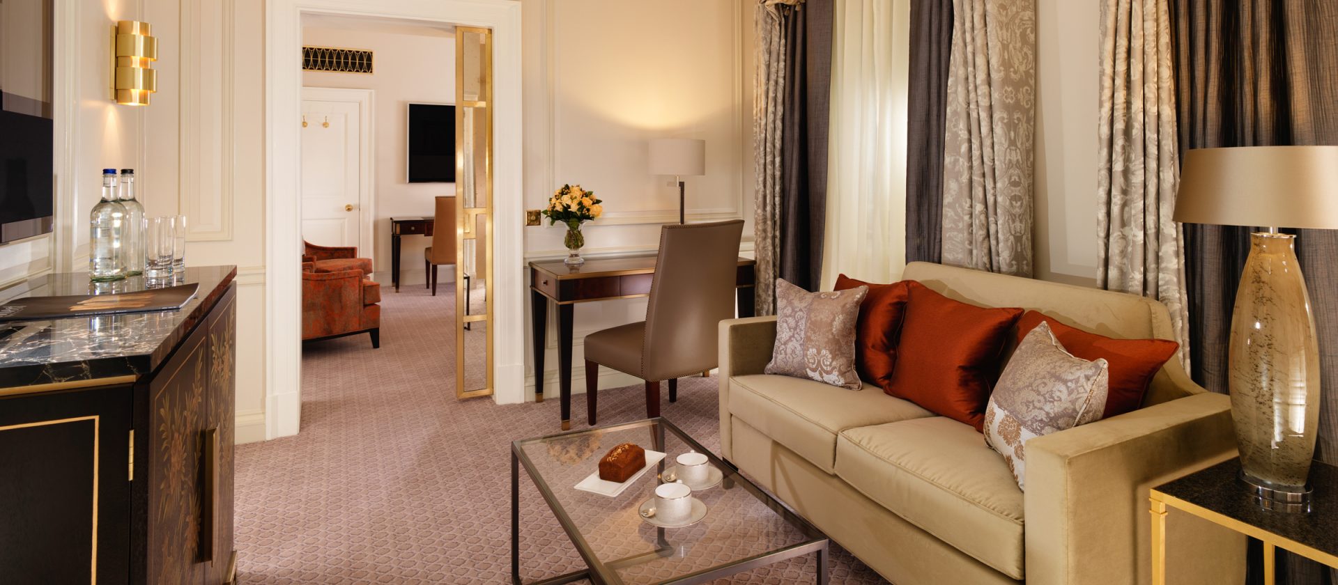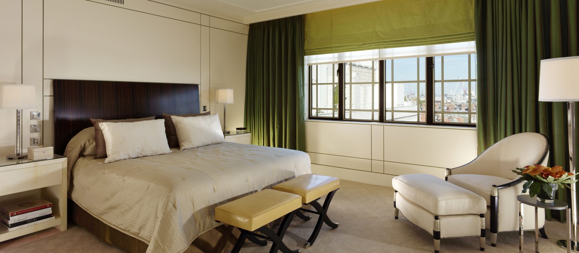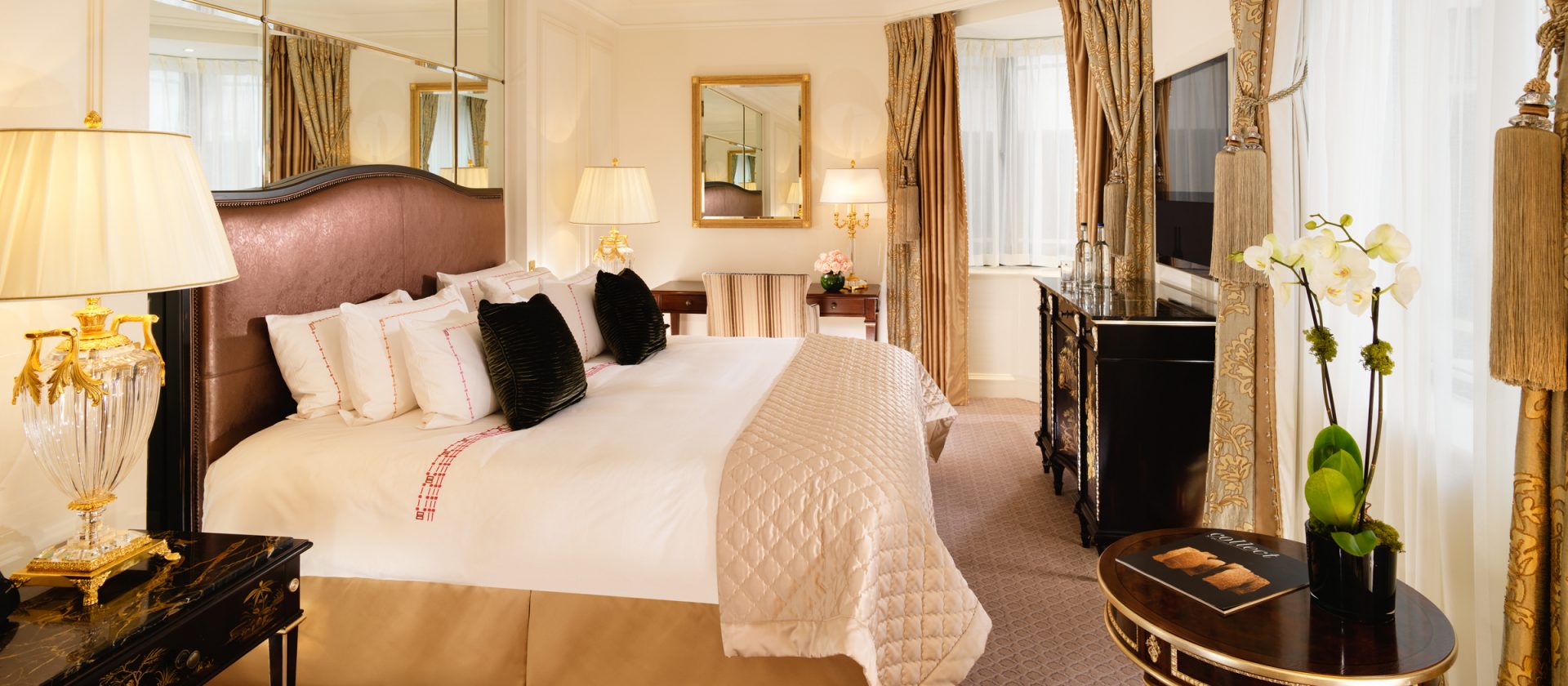 51 кв. м. Розкішний люкс, який підходить для тривалого перебування в готелі, складається з спальні з ліжком king-size, гостьового відокремленого від спальні зі скляними розсувними дверцятами і меблізованим диваном, кріслами, окремою робочою зоною з письмовим столом, великим мармуровим ванною кімнатою, подвійним раком і окремим душем. Вид центрального Лондонського р-ну Майфрі або внутрішнього суду готелю. Місце: 2 чол.