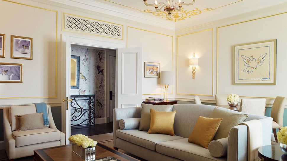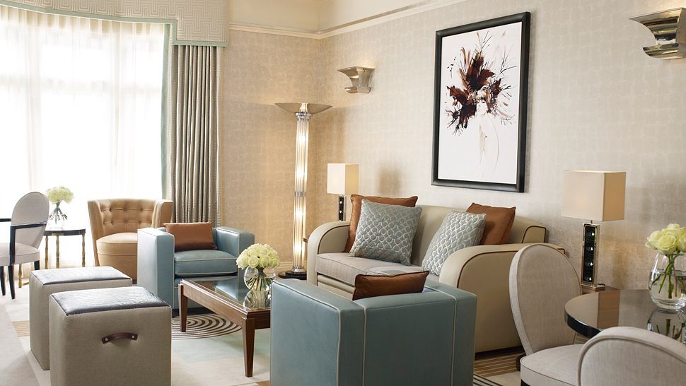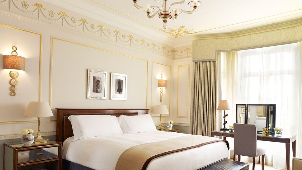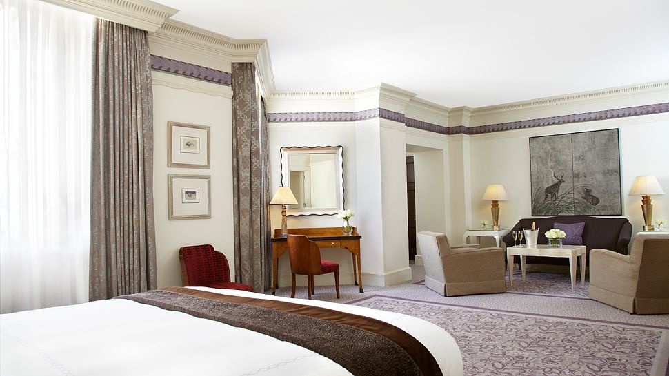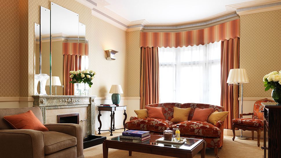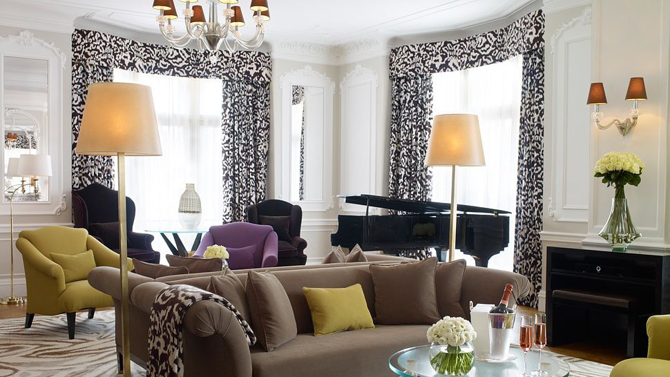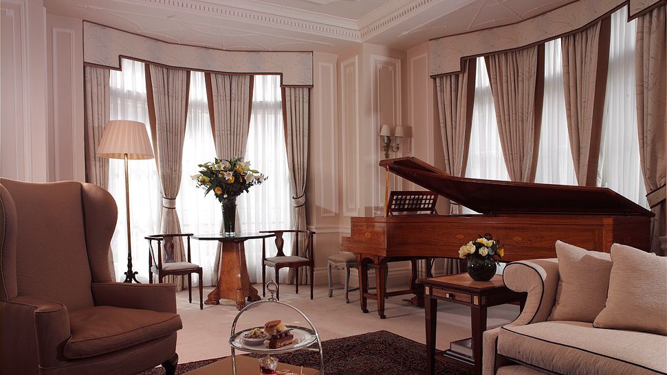 Гранд фортепіано Люкс: 177 кв.м. Стельовий номер на знаменитому Diane von Fürstenberg моделюється на придбаних меблів складається з залу в золотистих тонах, спальні з двоспальним ліжком king-size під лігу, симпатичний гість з вогнем, фортепіано і бароко, важка кімната, заготовка, смугаста ванна кімната з ванною кімнатою і душовою кабіною. Максимальне розміщення чотири. Може бути друга спальня. Гості можуть скористатися послугами палацу, безкоштовною передачею з аеропорту Хітроу в Мерседес представницького класу.