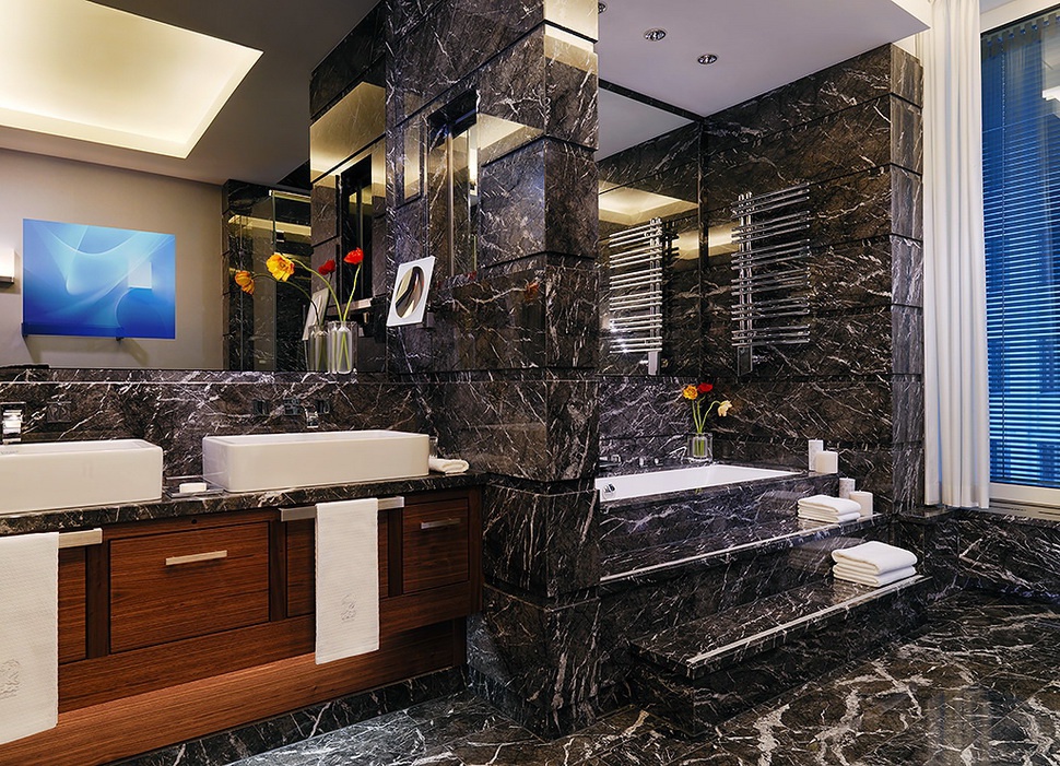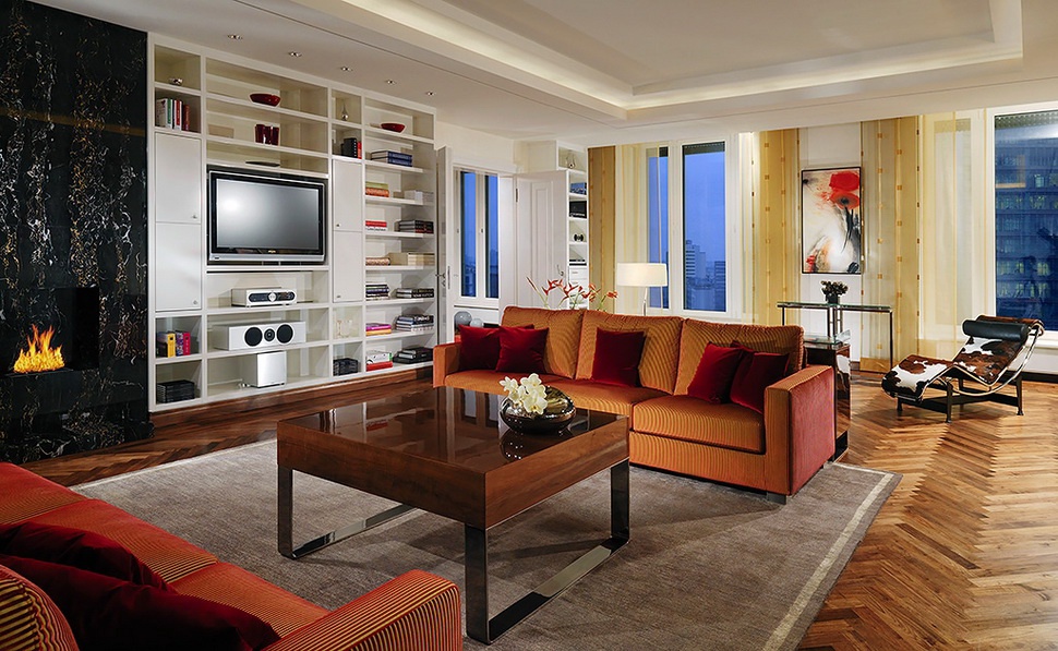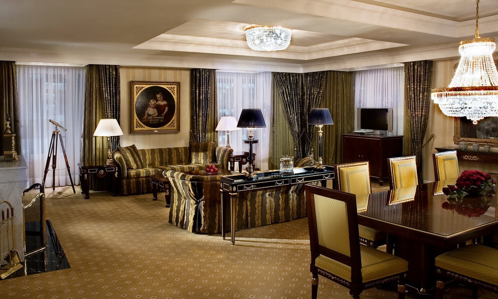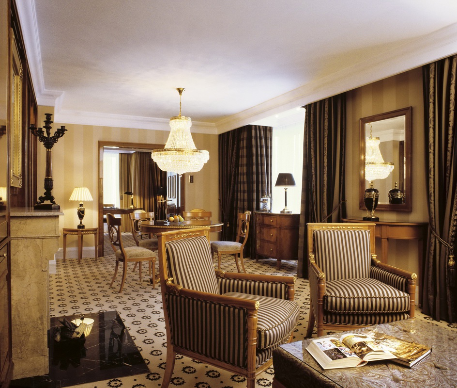 Люкс Ritz-Carlton: 204 м2, складається з спальні з ліжком king-size, вітальнею з вогнем, міні-кукні, санвузлом з сауною, ванною кімнатою і душовою кабіною, окремою туалетною кімнатою, гостьовою кімнатою з видом на Потсдамер Плац, центром Sony, Тіргартен і містом.