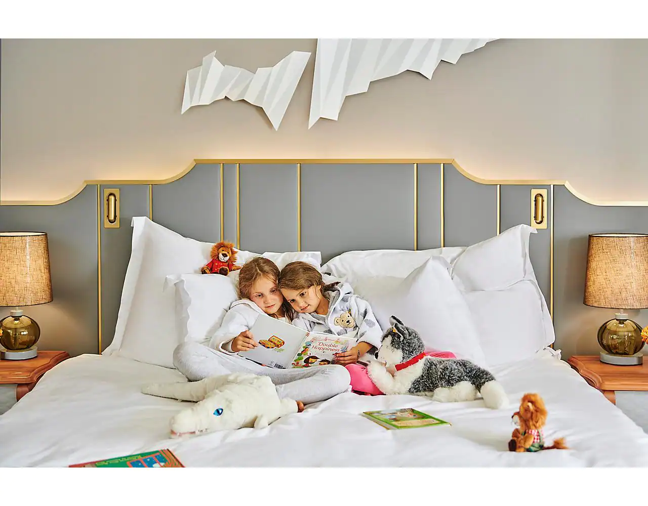 Двокімнатна вежа Люкс: 125-140 кв.м. З видом на місто є дві спальні (з ліжком king size і двома ліжками близнюків), harbor, округлої кімнати, їдальня 6 осіб з письмовим столом, міні-батом, двома санвузлами з ванною і душовою кабіною, гостьовою кімнатою. Паркінгові поли, вишукані меблі та насичена гамма вершків, золота та коричневих відтінків створюють щасливий настрій для цих чисел.