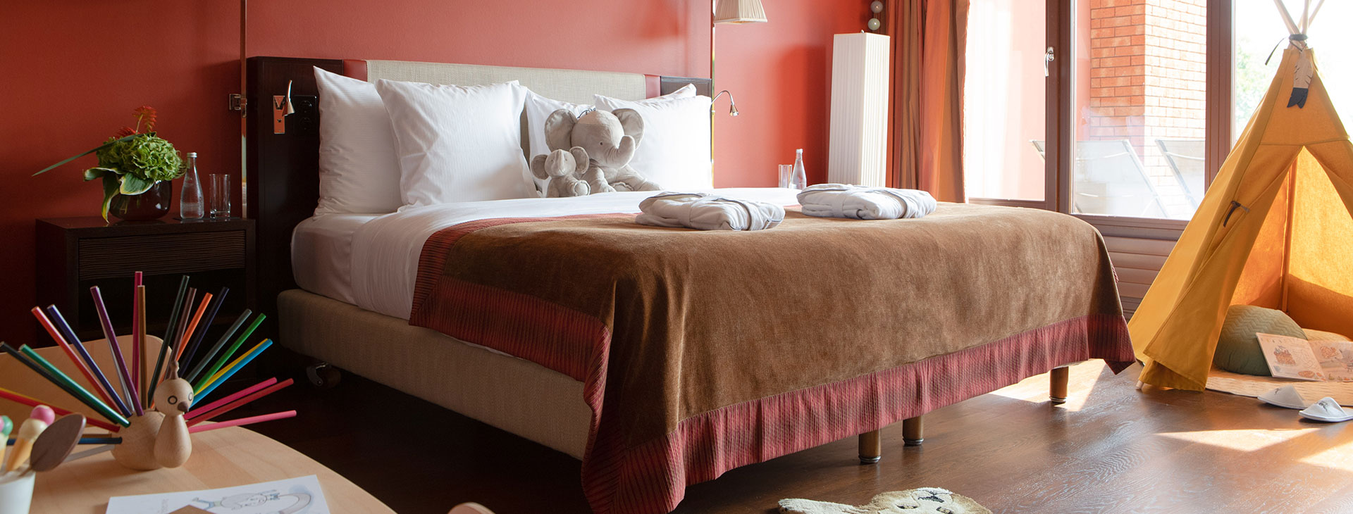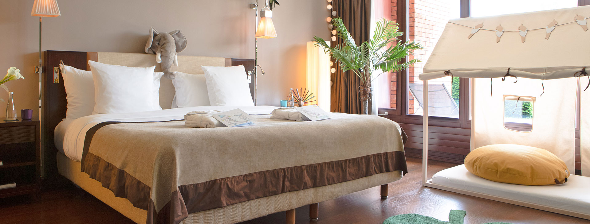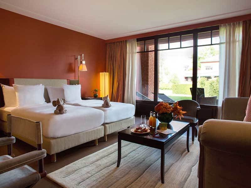 У 102 комфортабельних номерах різних категорій, в тому числі 73 номерів: Номер Полулюкс "Люкс" та 29 Suites: Junior Suite, Lake Suite, Executive Suite Паркування полів, розкішних драпірів, смажитих тканин, мармурової мозаїки, червоної деревини меблів, фото далеких країн і різнокольорових фоліантів - кожен номер - унікальний кут спокою і турбота про повсякденне життя в повній гармонії з відкриваючими краєвидами. Більшість номерів розкидані терасою або балконами, з яких відкривається картини на озері або парку. Для гостей, які люблять конфіденційність, є сучасна двоповерхова вілла з терасою в готелі.