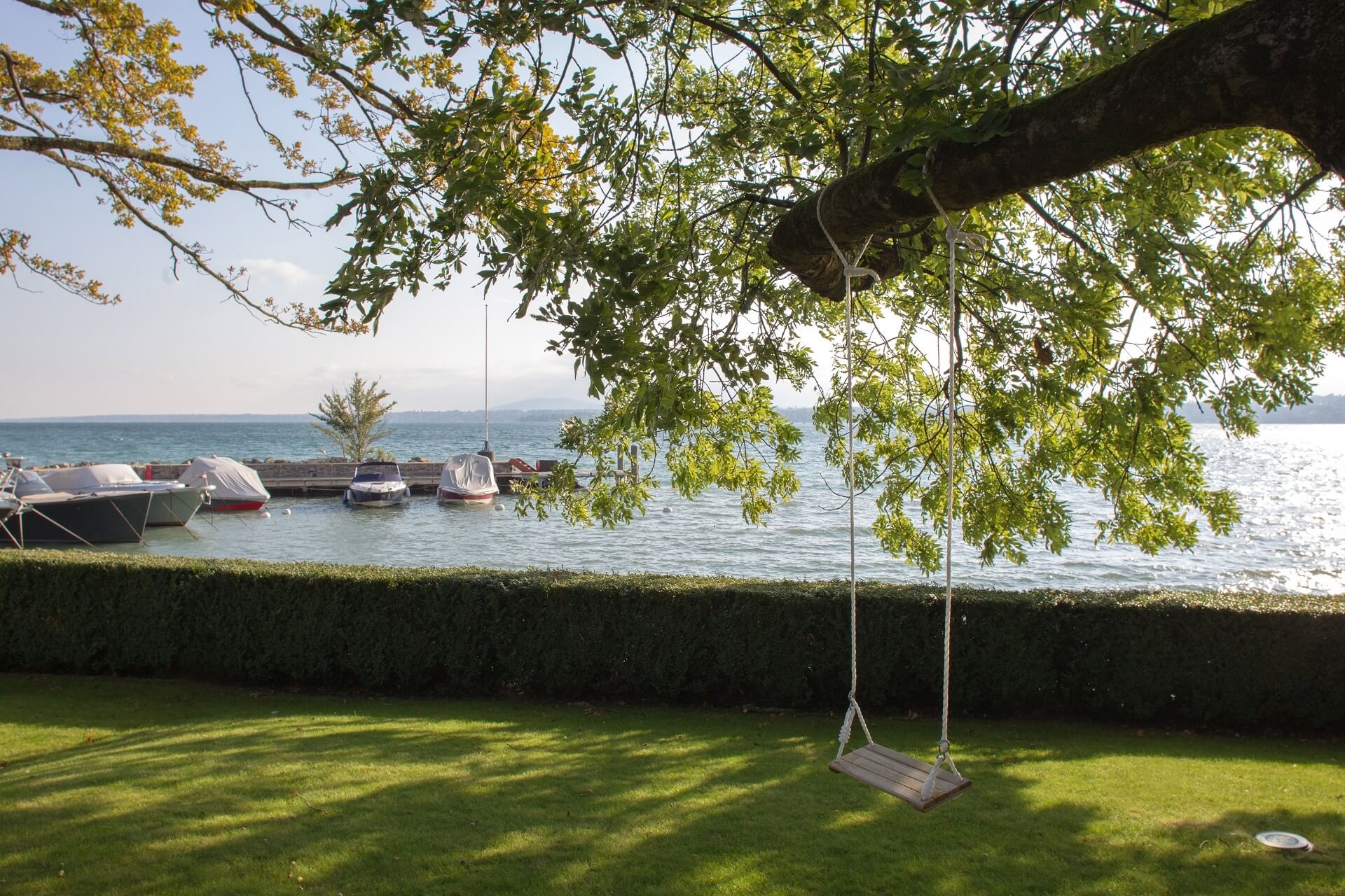 Площа 385 кв. м. ДвоступінковийСучасна вілла на пляжі Женевського озера, дизайн інтер\'єру, який керував Remi Tcheier. Вілла має три спальні, вітальню, кухня, Фітнес-зал, шафа-купекокс, тУ готелі є тераса, балкон і ванна кімната.Номери. Гостям пропонують відпочити в лаунж-барі з улюбленим напоєм. і послуги по догляду за поведінкою.