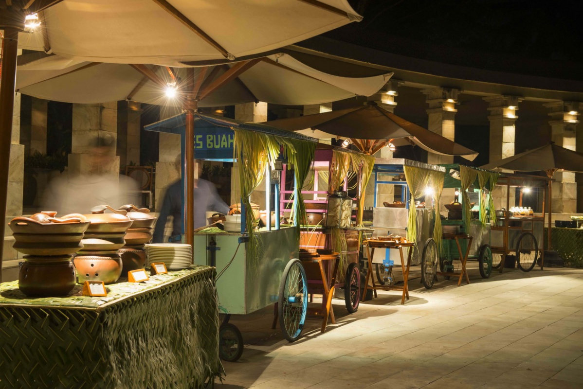 В основний ресторані готелю, розташованому у ротонді, зі стелями, прикрашеними листовим сріблом та стінами із золотим розписом, можна скуштувати страви західної та індонезійської кухонь, а також традиційні страви острова Яви – makan malam, тут же відкрито елегантний бар. Легкі закуски та різноманітні напої подаються в ресторані на відкритій терасі, звідки відкривається чудовий краєвид на навколишні краєвиди та бар Pool Club біля басейну.
