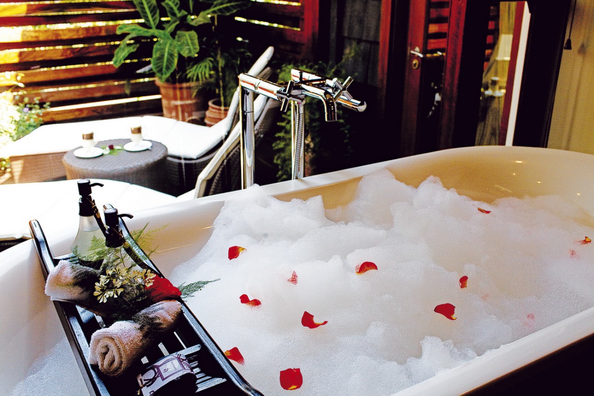 Затишна вілла складається з спальні, вітальні, ванної кімнати, тераси і саду.