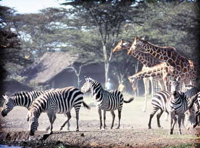 Вода і осади, де слони і носи, леви і гепари надходять на воду. У готелі є кілька сотень видів птахів. Деякі тварини не бояться людей, і вони близькі до готелю, наприклад, легкий чорний бізон і усадка. У готелі є комфортабельний ресторан, два бари, сафарі на джипах.Готель знаходиться в Заповіді Солодощів, 217 км від столиці Кенії, Найробі та 17 км від аеропорту Нанюки.