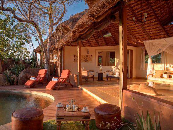 Готель Elsa's Kopje розташований на пагорбі Каменіста і складається з двох частин. Перша зона - житлова зона, в якій знаходиться катанка. Друга частина підключена до першого широкому провулку і включає в себе ресторан, відкритий бар і загальний вітальня.Всі готельні боти побудовані з каменю і покриті пальмовими листями і нагадують традиційні кенені житло. Весь готель покритий світильниками.