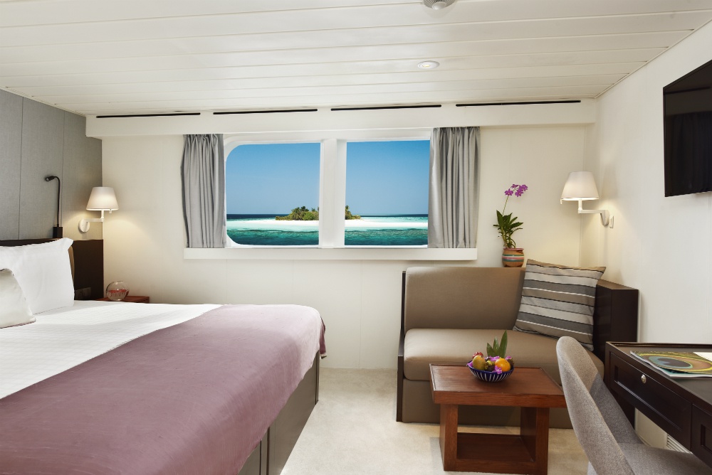 На катамарані знаходиться 11 кают різних категорій, включаючи 10 State Rooms та Explorer Suite. У каютах - елегантні сучасні інтер'єри в пастельних тонах, з килимовим покриттям на підлозі, зручними меблями з тикового дерева, вишуканими елементами декору.