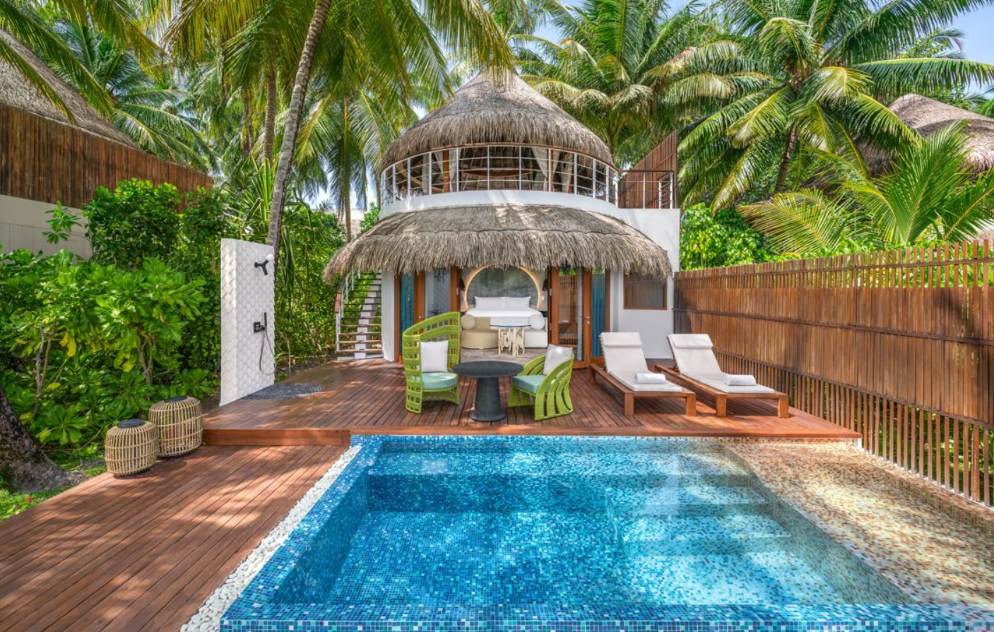 Курорт включає 77 вілл (overwater та beach villas), повністю оновлених та виконаних у сучасному дизайнерському стилі з яскравими елементами та панорамними видами.