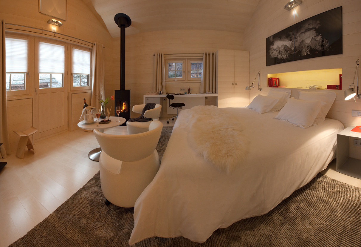 Зайшовши в шале Grépon, ви ніби занурюєтеся в білий рай, який обіцяє затишні ночі, де сняться солодкі сни. Це шале, назване на честь гранітної вершини, що височіє над нею, пропонує спальню площею 45 м², де бездоганний білий інтер’єр зігрівається полум’ям дров’яної печі.
