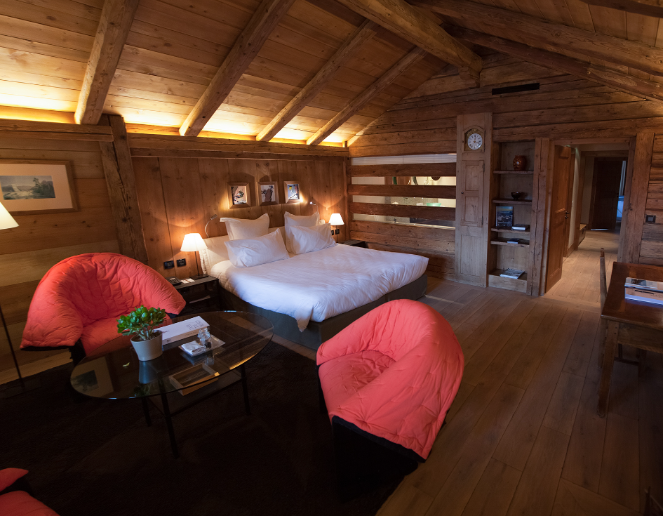Ці розкішні номери з каміном і видом на Монблан доповнюють сучасний декор і гірський характер, атмосферу дров'яного вогню, обличчям до ліжка та зони відпочинку. Номери обладнані просторою та світлою ванною кімнатою з гідромасажною ванною та душовою кабіною