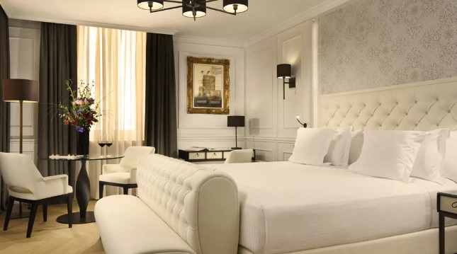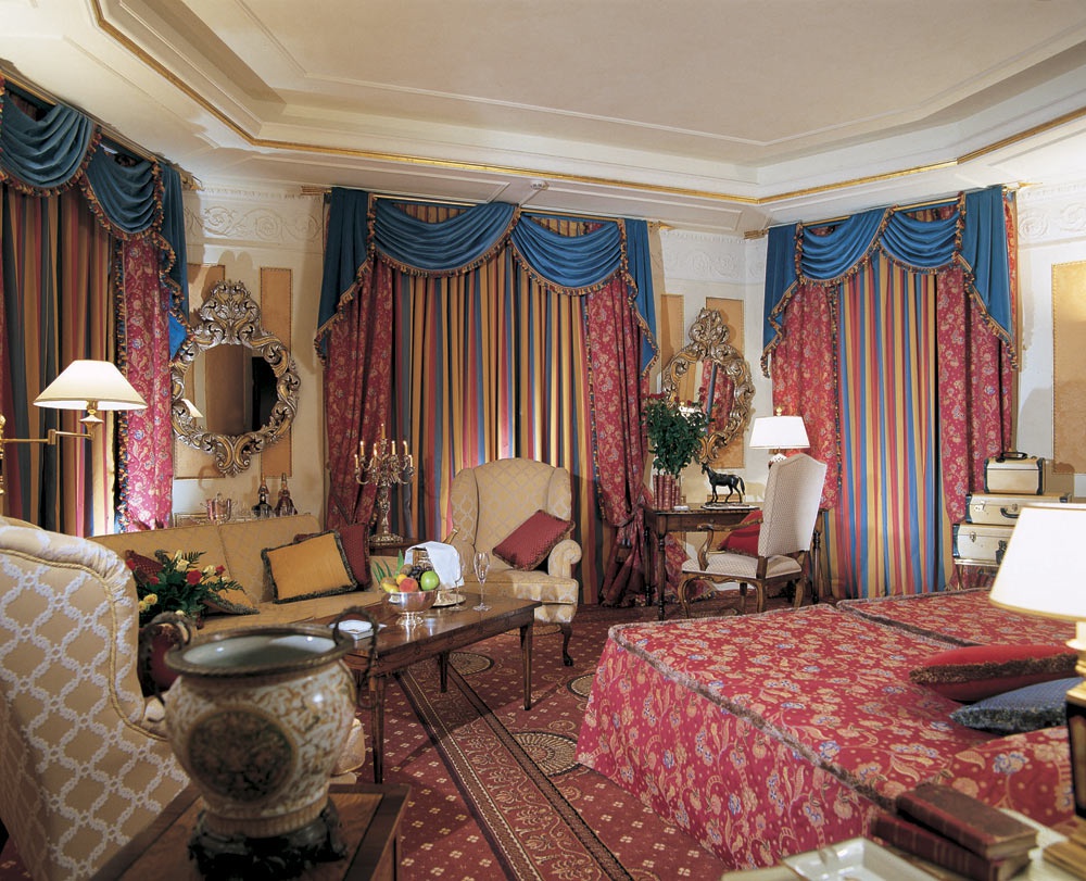 Теплі відтінки кольорів і захоплюючі, багаті на деталі, розкішні та елегантно мебльовані, покращені номери вирізняються неокласичним стилем бароко, що складається з декоративної ліпнини, буазері, парчі та дзеркал.