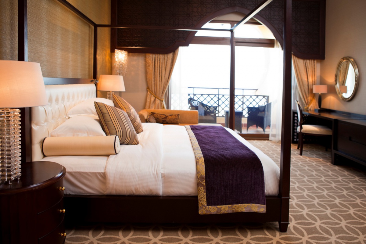 King Hilton Guestroom: 48 м2. Складається зі спальні з ліжком king-size, ванної кімнати з ванною та душем, балкону з видом на місто або тераси з виходом на пляж. Максимальне розміщення – 2 особи.