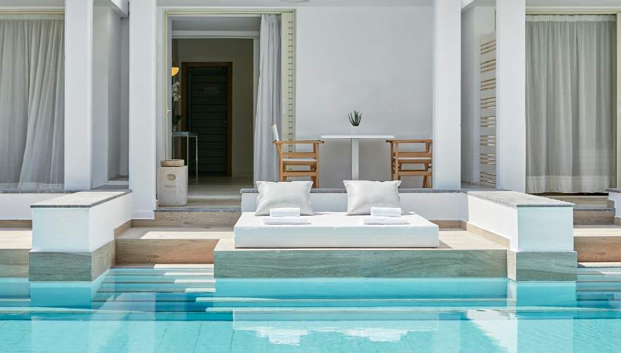 YALI КОЛЕКЦІЯ: Yali сьюти та вілли - втілення грецького способу життя: елегантний сучасний дизайн, персональний басейн, вид на море що зачаровує, та шум хвиль.