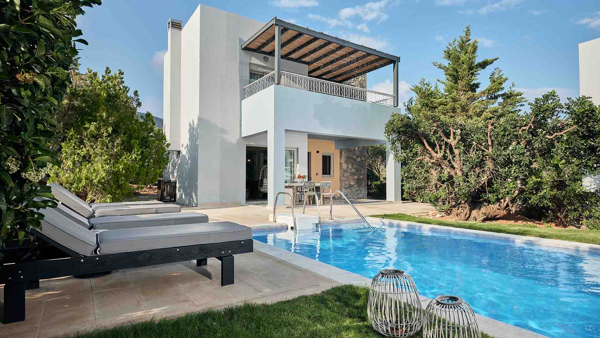 Кожна з вілл комплексу Domes Luxury Residents (площею від 400 кв.м до 600 кв.м) розташована на приватній території та надає простору та комфортну вітальню, повністю обладнану кухню, приватний плавальний басейн та клубні електромобілі для легкого пересування по території курорту.