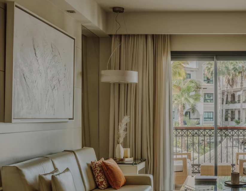 Цей просторий люкс із терасою заливає багато природного світла. До послуг гостей окрема вітальня з диваном-ліжком, обідній стіл і спальня з гідромасажною ванною та тропічним душем.