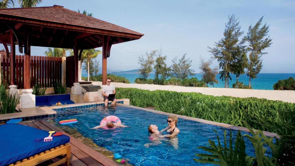 Двокімнатна Ocean Front Villa: - 252 кв.м1 часй Він складається з вітальні з зоною харчування, кухні, двох спалень (з ліжком розміру king-size і двома ліжками королеви-szie), двох санвузлів, додаткового туалету, тераси з власним басейном і чатом, і йде в бухту. Максимальне розміщення чотири дорослих.