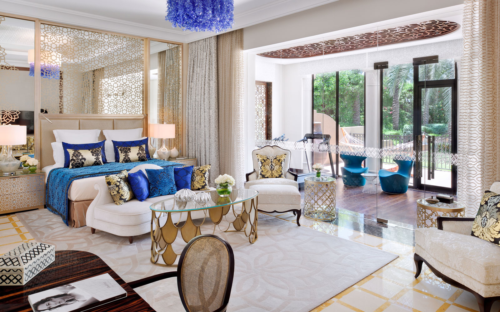 100 кв. м. Інтер'єр люксу, розташованого в The Palace, оформлений у сучасному арабському стилі з елементами розкоші та дорогого текстилю. Гості, що проживають у цьому номері, можуть вільно відвідувати «Gold Club», який має особисту стійку реєстрації, а також вітальню на третьому поверсі готелю. Щоденний сніданок подається в ресторані Olives. Номер має спальню з ліжком розміру «king-sizе», їдальнею з обіднім столом на чотири персони, вітальнею, ванною кімнатою з ванною, душовою кабіною та подвійною раковиною, гостьовим туалетом, балконом або мебльованим патіо. З панорамних вікон відкривається чудовий краєвид на Аравійське море і прекрасний сад. Розміщення: 3 особи.