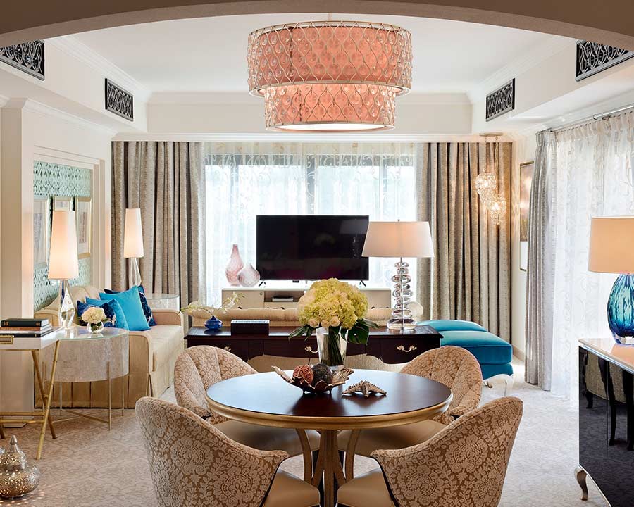 125 кв. м. В інтер'єрі представницького люксу, розташованого в Arabian Court використані кольори, що нагадують про близькість пустелі, східний стиль читається в візерунках шикарних тканин, що додає атмосфері люксу розкоші та елегантності. У номері знаходиться спальня з ліжком розміру «king-sizе», вітальня, їдальня з великим обіднім столом, ванна кімната прикрашена деревом, мозаїкою та мармуром, вона обладнана ванною, душовою кабіною, подвійною раковиною, окремий туалет з біде, гостьовий туалет, простора тераса. Відведено робочу зону зі зручним столом, на якому є факс, доступ в інтернет та принтер. Дані номери розташовані поруч із суміжним двомісним номером та мають спільне фойє. Розміщення: 3 особи.
