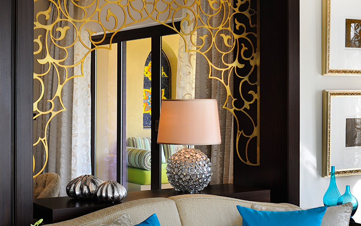 Arabian Court надає гостям готелю розкішні номери в аравійському стилі з різьбленими елементами меблів, багатим текстилем та чудовими видами на затоку. Внутрішні дворики з садами, фонтанчиками та зонами відпочинку занурюють туристів у справжню містичну близькосхідну казку.