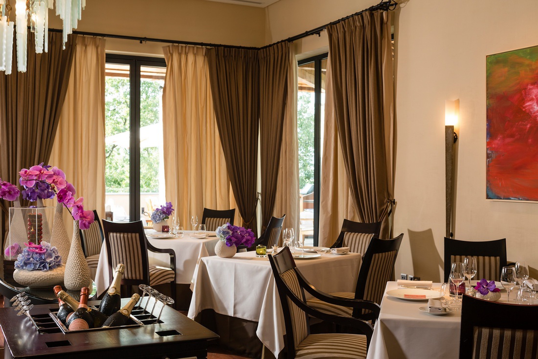Клубний будинок: Les Caroubiers - ресторан Les Caroubiers, розташований у клубному будинку, пропонує чудовий вид на лунку 18 поля Le Riou і зелену рослинність поля для гольфу. Les Caroubiers є улюбленим місцем відпочинку для гурманів гравців у гольф, а також приваблює гостей готелю та місцевих жителів, які цінують бістрономічні пропозиції в його меню.