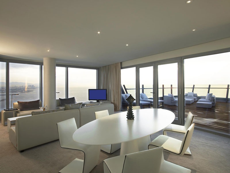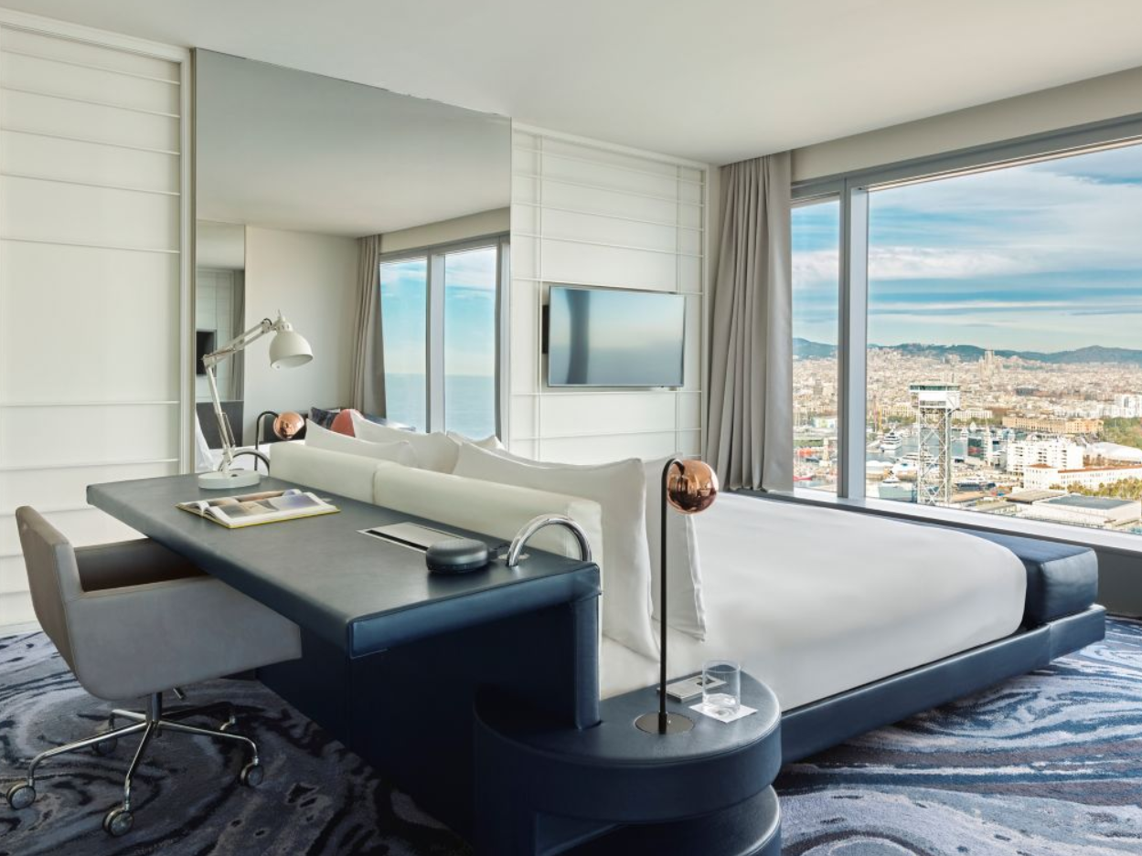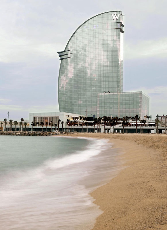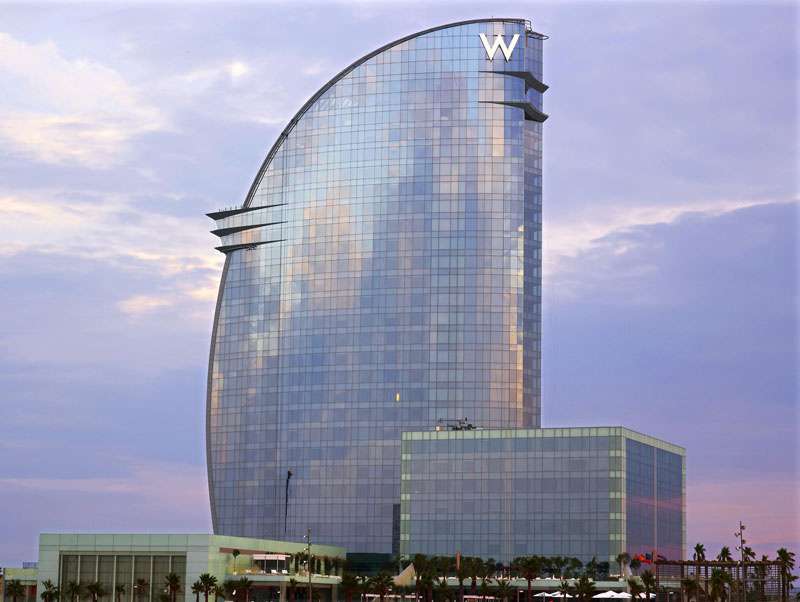 Блискуча 26-поверхова вежа W Barcelona Іспанія, збудована у вигляді вітрила, височить над синьою гладдю Середземного моря, у приморському районі Барселони, неподалік готичної архітектури Старого міста та численних пам'яток каталонської столиці. Готель є справжнім шедевром всесвітньо відомого архітектора Рікардо Бофілла. Унікальна архітектура будівлі, ультрасучасний дизайн інтер'єрів та найновіше технічне оснащення готелю вражають грандіозним розмахом. Обладнані за останнім словом техніки номери поєднують мінімалістський стиль і вишукану розкіш оздоблення, а їх панорамні вікна на всю стіну дозволяють милуватися захоплюючою панорамою міста і моря.