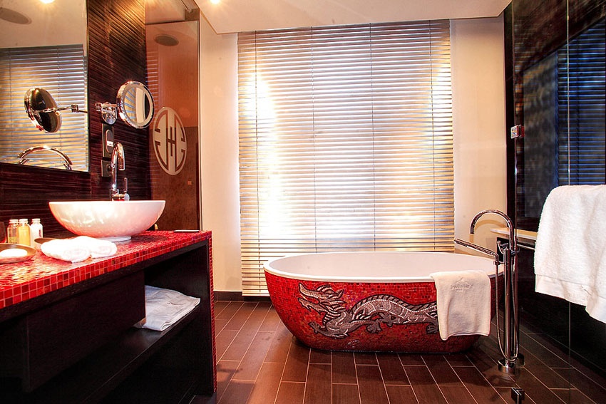 Будда Люкс: 78 кв. м. Номер знаходиться на першому поверсі готелю. З спальні з ліжком Король, розмір, массандра і ванна кімната.