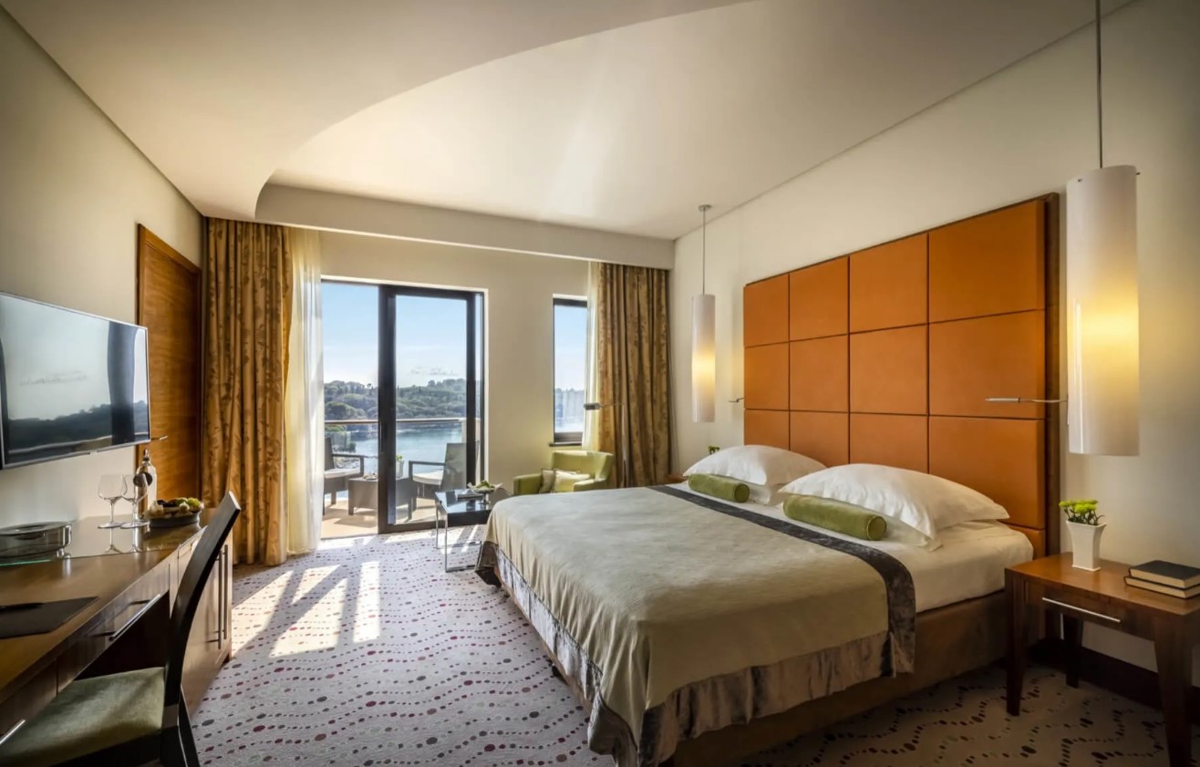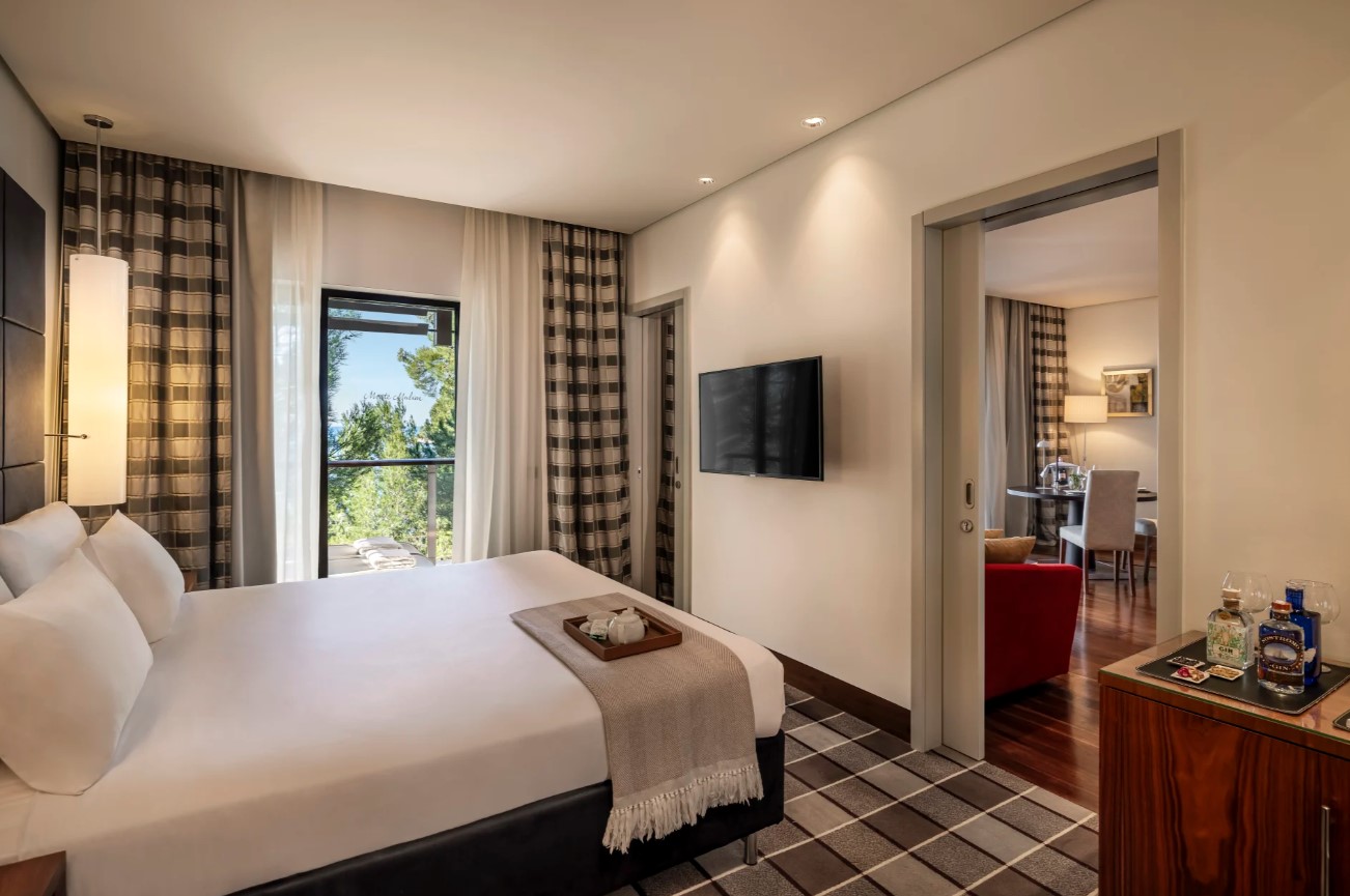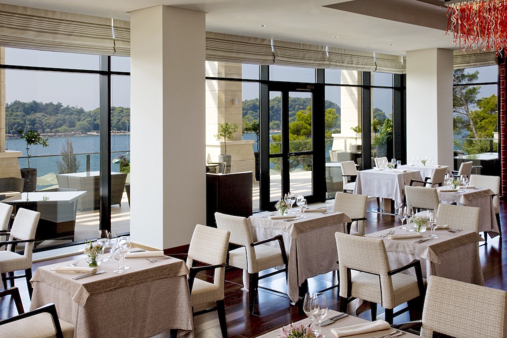 Гастрономічний Restaurant Mediterraneo представляє поєднання розкішної обстановки - мармуровий камін, люстри з муранського скла, дивовижний вид на затоку і парк - і різноманітного витонченого меню, що включає страви Греції, Іспанії, Лівану та Північної Африки.