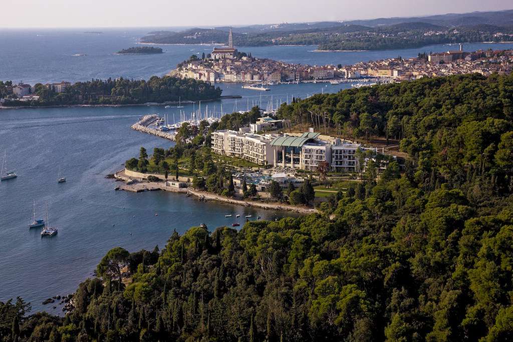 Готель розташований на західному узбережжі Істринського півострова, за 2 км від історичного центру та за 3 км від гавані Ровіню, за 38 км від міжнародного аеропорту в Пулі.