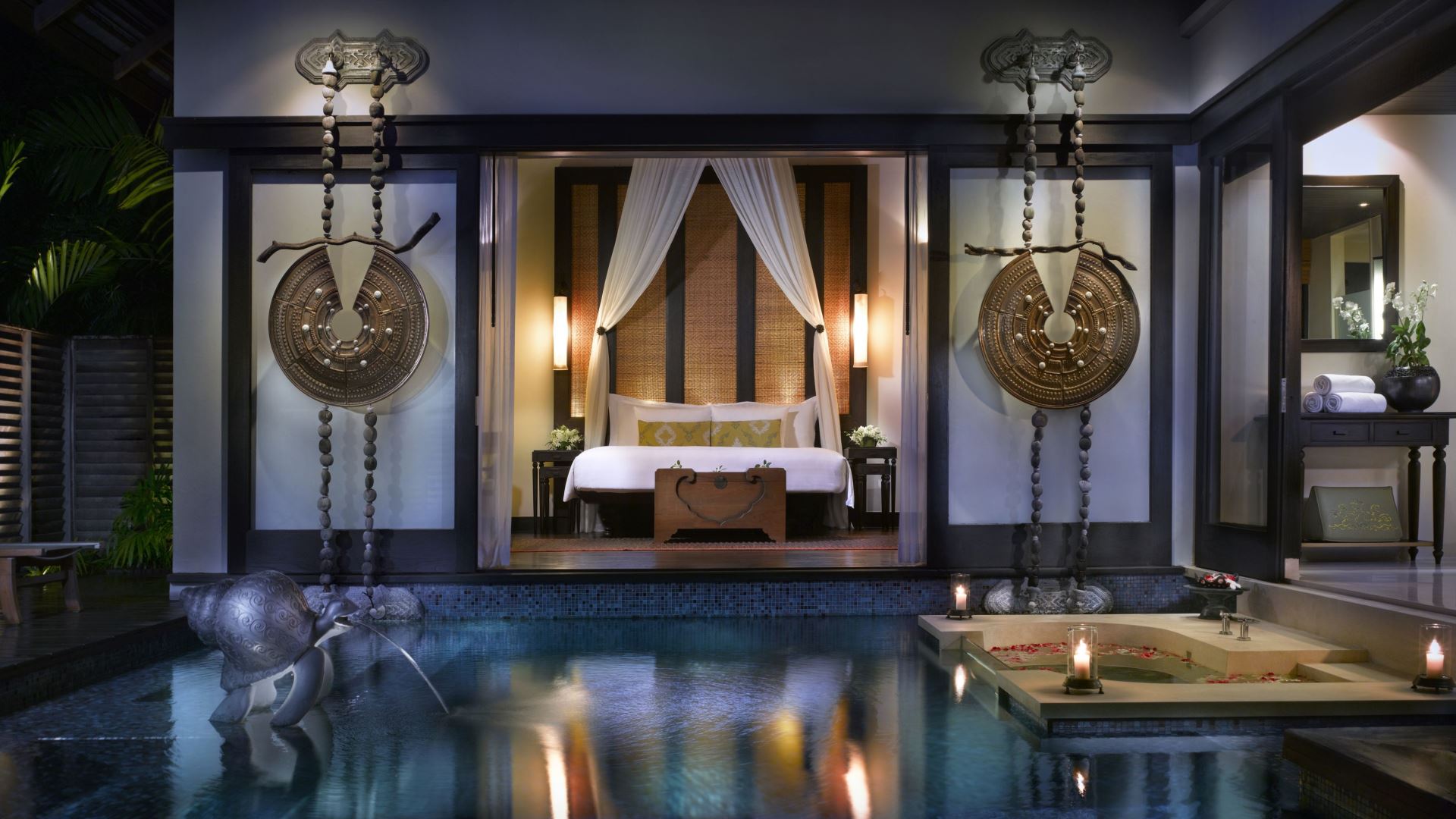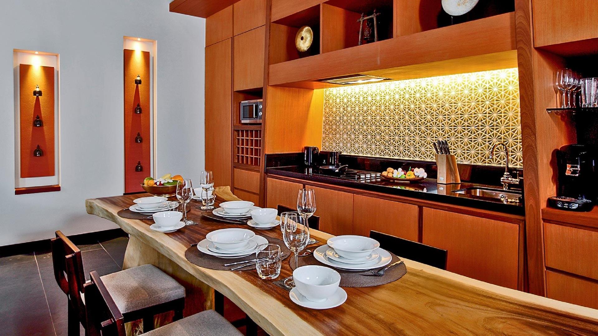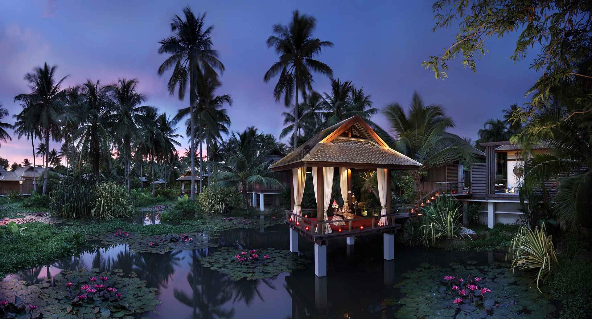 206 кв.м, вілла в тайському стилі, розташована біля лагуни сала, включає спальню, вітальню, ванну кімнату, відкриту та криту обідні зони, терасу з джакузі та власним басейном, павільйон, розташований над водами лагуни, солярій із шезлонгами. Обслуговування, щоденний післяобідній чай. Розміщення - 3 дорослих та 1 дитина.