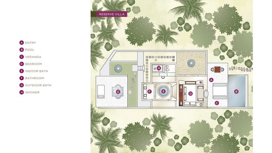 Зареєструватися Басейн Вілла: 106 кв.м. Розташований в тропічних садах, в тому числі спальня з двоспальним ліжком king-size і вітальнею, harbor, відкриті і покрівельні санвузли, mebled тераса, власний басейн, приватний сад. Місце двох осіб.