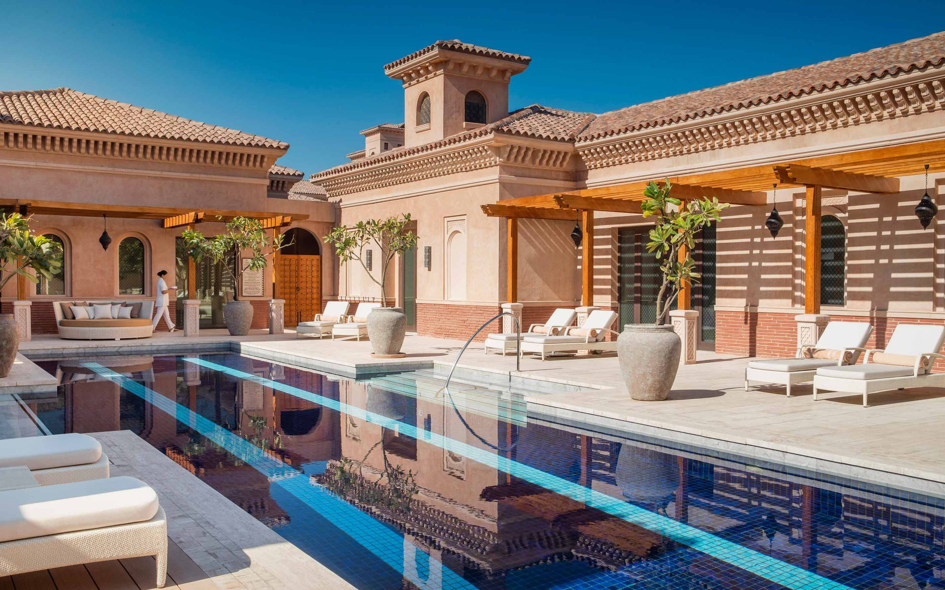 Шикарні люкси мають площу 130 кв. м розташовані за кілька кроків від пляжу в особняках Palm Beach і оформлені в традиційному мавританському або андалузькому стилі з використанням вишуканих елементів декору. Їдальня тут об'єднана з лаундж зоною, а зі спальні з ліжком розміру «king-size» можна потрапити на простору мебльовану терасу, яка має басейн і знаходиться в тіні пишного саду. Номер також має головну ванну кімнату з глибокою мармуровою ванною і зливовим душем і гостьовою ванною кімнатою. Вид на сад. Розміщення: 2 дорослих та 1 дитина віком до 11 років або 2 дорослих та 1 підліток віком від 12 до 16 років (за додаткову плату).