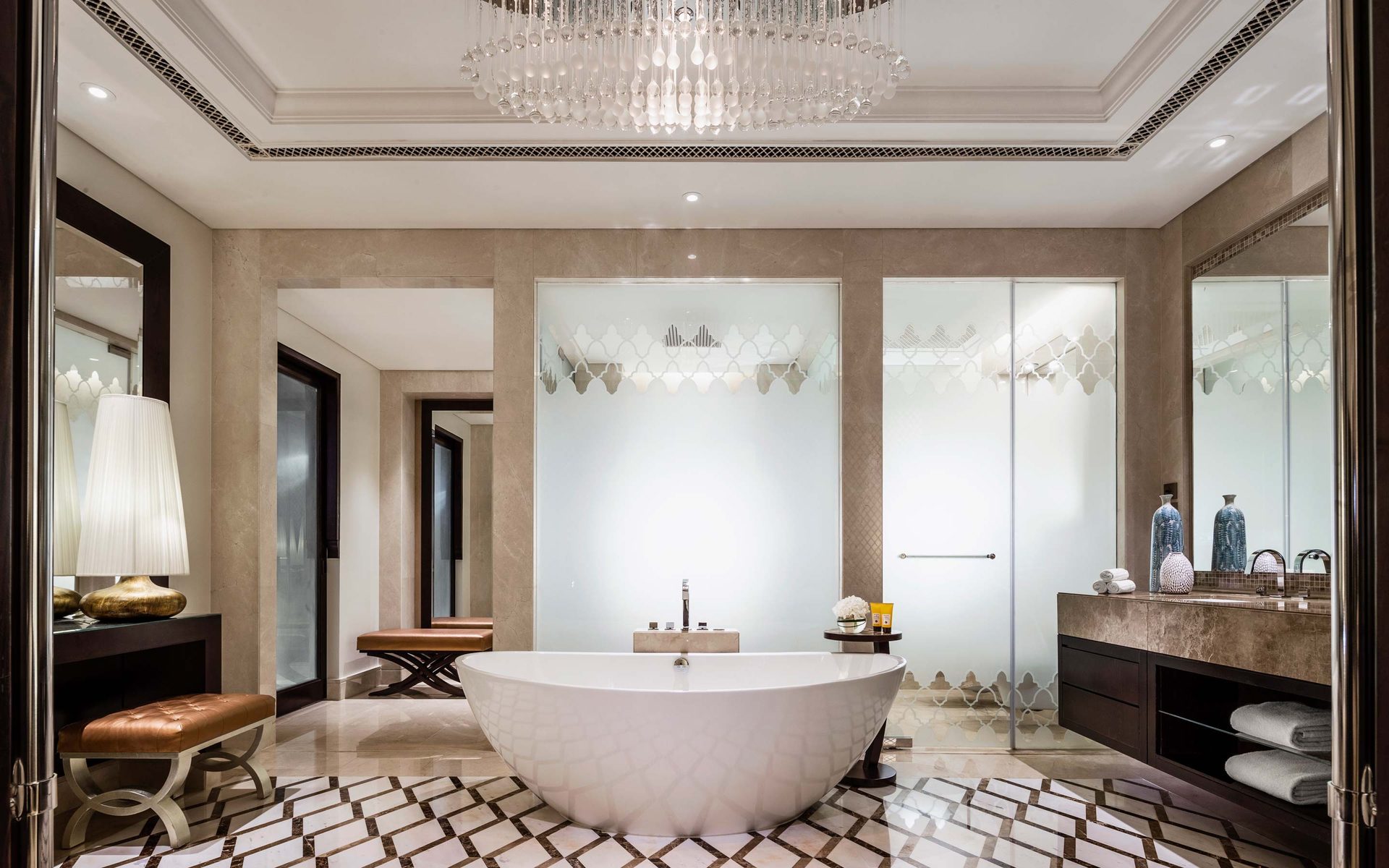 Просторий люкс площею 250 кв. м знаходиться в особняку Manor House. У дизайні приміщень використано сучасний стиль із традиційними арабськими елементами. Номер складається з однієї великої спальні з ліжком розміру «king-size», вітальні, обідньої зони, робочого куточка, ванної кімнати з величезною мармурової ванною, що окремо стоїть, і окремим тропічним душем, холу. На просторій терасі розташовані зручні кушетки у стилі меджлісу та лежаки. Компетентний та досвідчений персонал готовий цілодобово виконувати всі побажання гостей. Доступно сумісне бронювання з номером Palm Manor Premiere Room. Вид на басейн. Розміщення: 2 дорослих та 1 дитина віком до 11 років або 2 дорослих та 1 підліток віком від 12 до 16 років (за додаткову плату).