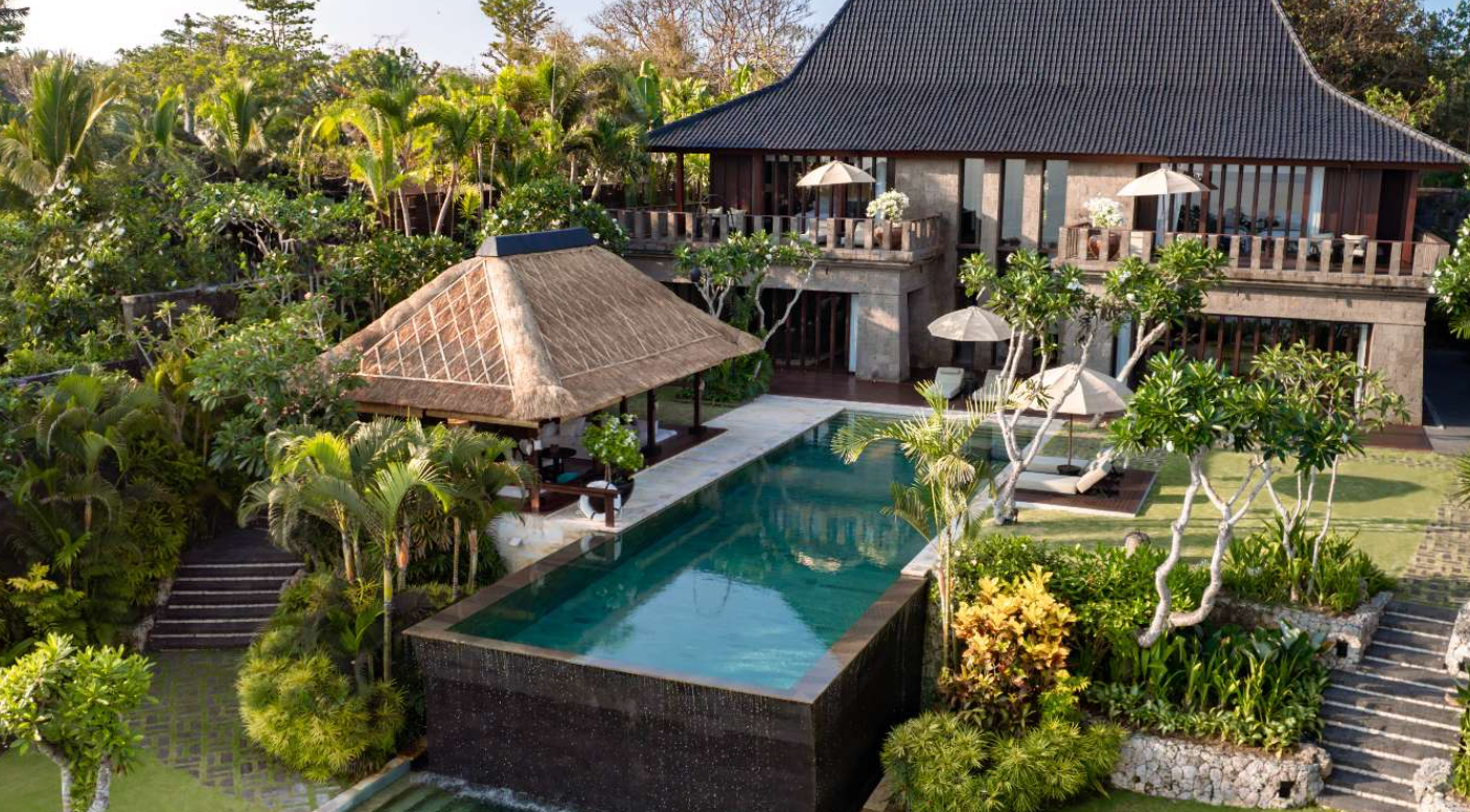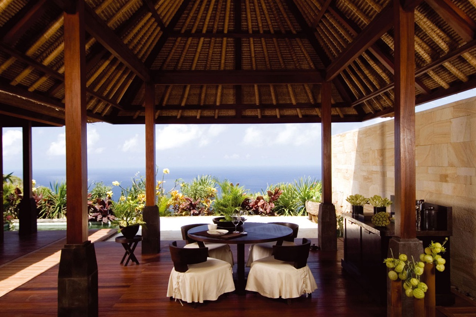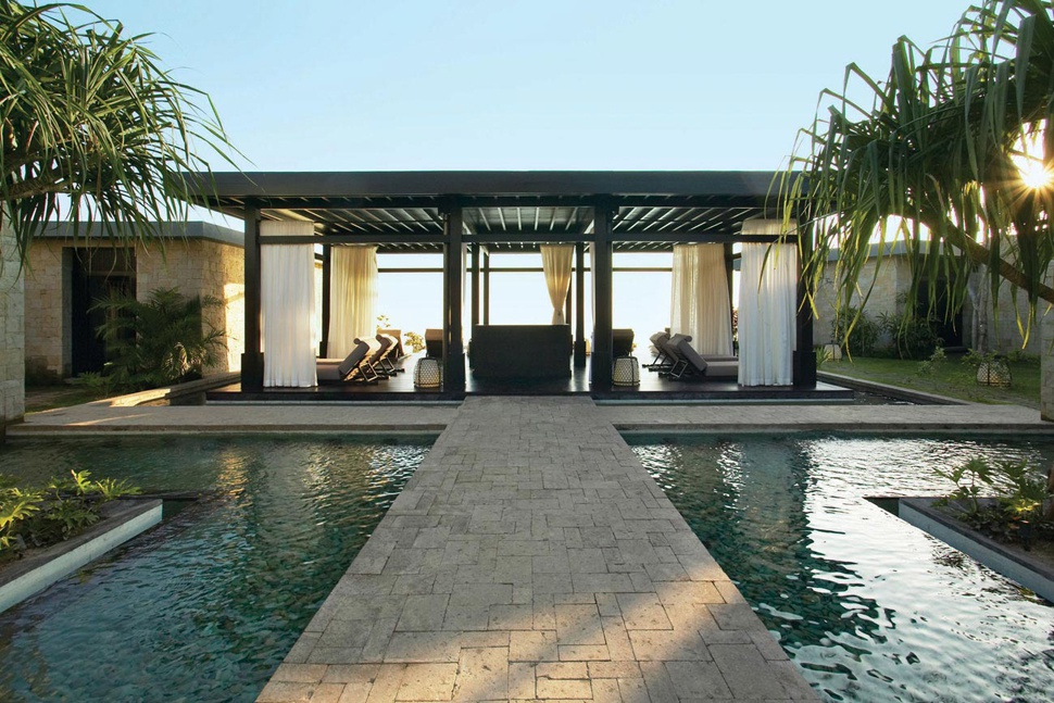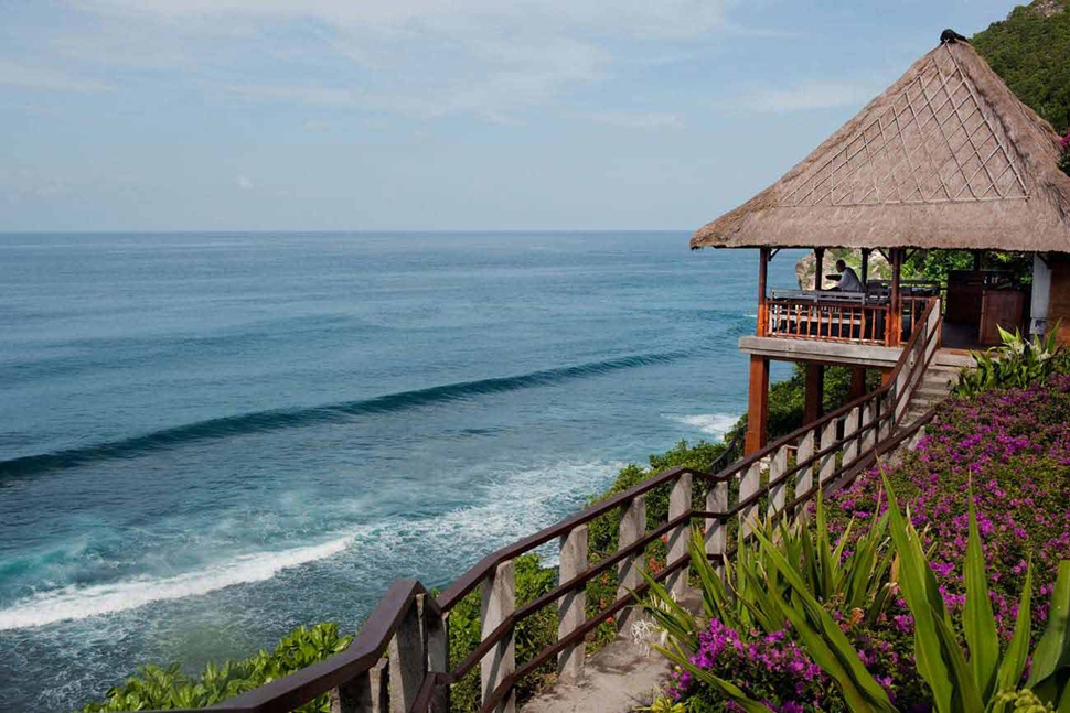 На вершині 150-метрової скелі, яка спускається до білосніжного 1,5-кілометрового пляжу, омиваного прозорими водами Індійського океану, розташувалися фешенебельні вілли Bvlgari Resort, що відображають сучасну інтерпретацію традиційної архітектури Балі, – результат творчості італійського архітектора Антоніо Читтеріо, який представляє знаменитий бренд Bvlgari.