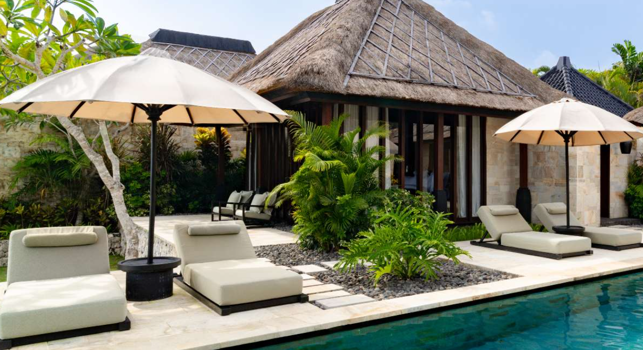 У готелі 59 комфортабельних вілл, виконаних в індонезійському стилі з вулканічних порід: витончені будівлі з дахами з дерева іланг-іланг, красивими бронзовими ліхтарями на вході, із затишними традиційними внутрішніми двориками. У номерах – стильні інтер'єри, що поєднують сучасний італійський дизайн та традиції острова Балі, з обробкою з екзотичних порід дерева та каменю, витонченими меблями, прикрашені оригінальними елементами декору, а також предметами антикваріату та витворами мистецтва роботи місцевих авторів. Кожна з вілл включає спальні, ванну кімнату зі скляною стіною, відкритий павільйон-вітальню з обідньою зоною, внутрішній дворик із садом, мебльовану терасу з басейном. Вілли обладнані апаратурою від Bang and Olufsen, гостям надаються послуги дворецького.