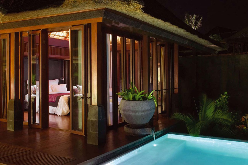 У готелі всього 59 комфортабельних вілл, виконаних з використанням вулканічних порід, в індонезійському стилі: витончені будівлі з дахами з дерева еланг-еланг, красивими бронзовими ліхтарями при вході та затишними внутрішніми двориками з садом. У номерах – стильні інтер'єри, що поєднують сучасний італійський дизайн та традиції острова Балі, з обробкою з екзотичних порід дерева та каменю, витонченими меблями, прикрашені оригінальними елементами декору, а також предметами антикваріату та витворами мистецтва місцевих авторів.