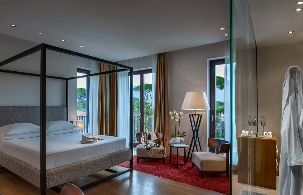 Чиста елегантність і сучасний дизайн. Класичні номери пропонують ідеальну атмосферу для вашої подружжя, інтимні з теплими деталями, французькі вікна від підлоги до стелі з видом на внутрішній двір, які забезпечують природне освітлення кімнати. Паркетна підлога, мармурова ванна кімната з душовою кабіною в скляних стінах.