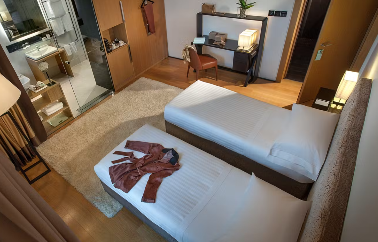 В кожному номері: кондиціонер, система звукоізоляції, телевізор LCD, прямий телефон, доступ в інтернет Wi-Fi, CD/DVD player (за запитом), сейф, міні-бар, фен, халати, тапочки.