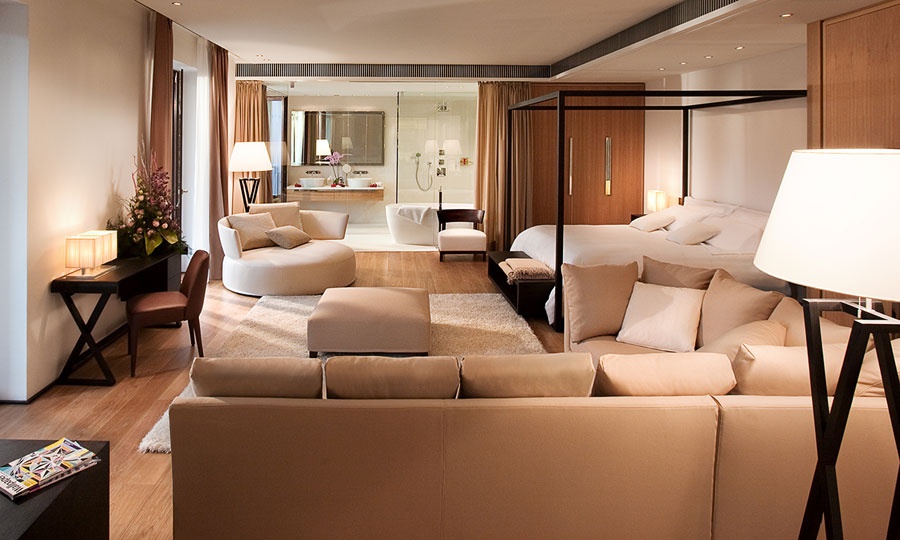Двомісний номер категорії «Делюкс», світле та просторе приміщення, паркетна підлога, французькі вікна, що наповнюють природне світло. Вид на внутрішній дворик, мармур — це оздоблення ванної кімнати з душовою кабіною. Винний льох із вибором найкращих винних етикеток. Технологія сенсорного екрану освітлення та кондиціонування.