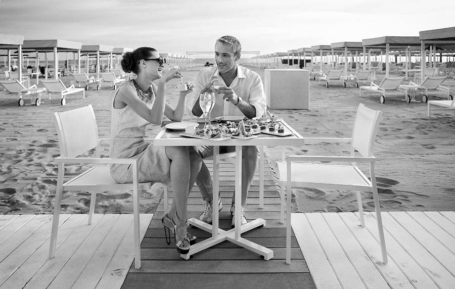 Ресторан на даху готелю запрошує гостей насолодитися не лише авторськими стравами від шеф-кухаря, а й дивовижним панорамним краєвидом на чарівні ландшафти узбережжя Тоскани. У барі гостям запропоновані першокласні напої в особливій атмосфері, де звучить жива музика та дискотеки. У літній період в Principe Forte Dei Marmi Італія працюють відкриті ресторани на пляжі та біля басейну.