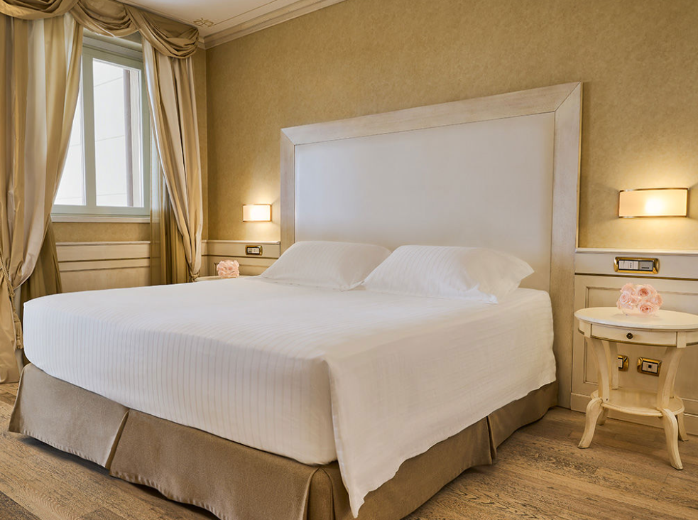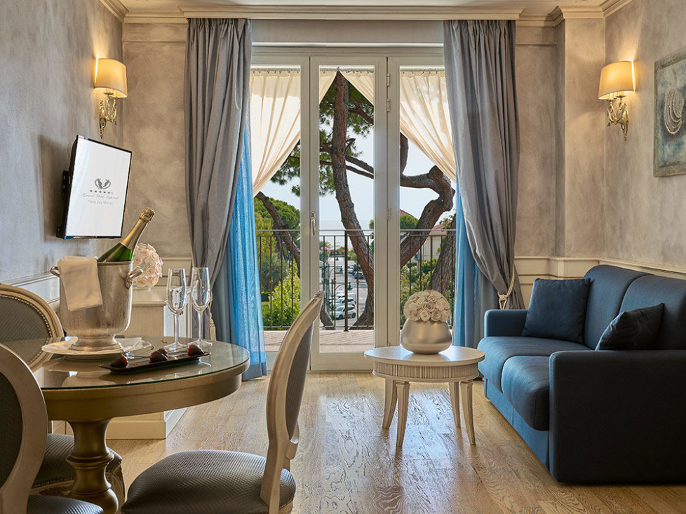 Перебуваючи в цих номерах, які ідеально підходять для розміщення до двох осіб, ви зможете насолодитися комфортними та розкішними зручностями та широким спектром послуг у Grand Hotel Imperiale.