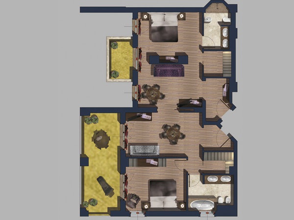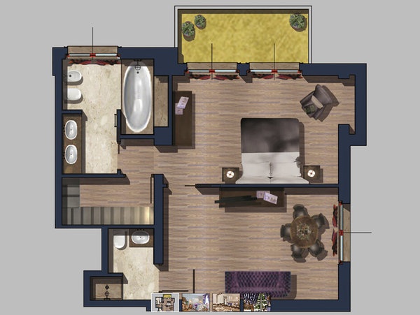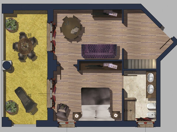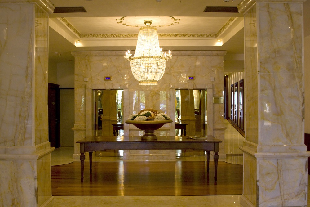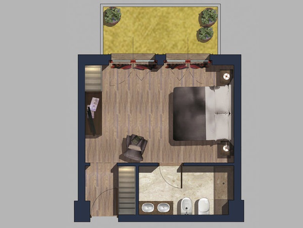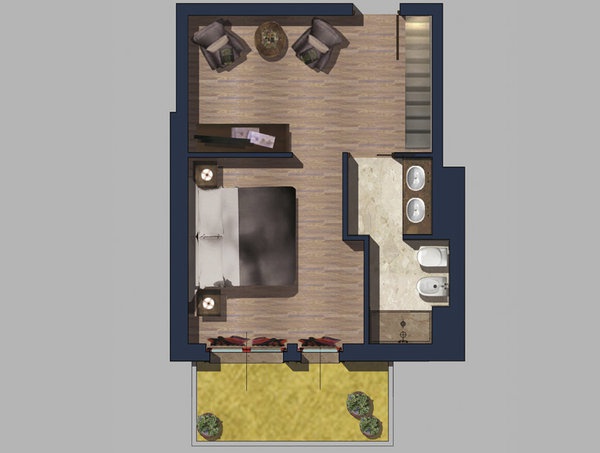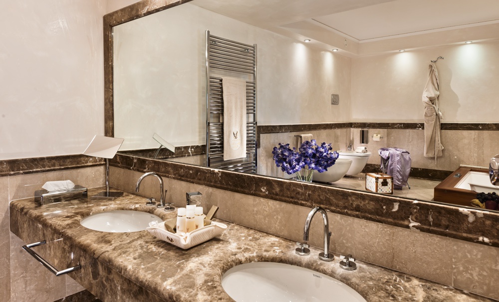 Світлі номери Делюкс вирізняються м'якими кольорами та мають оздоблену мармуром ванну кімнату у відтінках охри та бежевого кольору та окремий балкон.