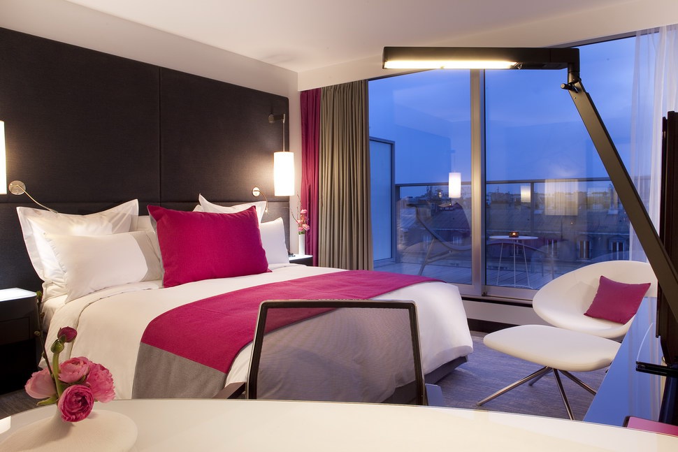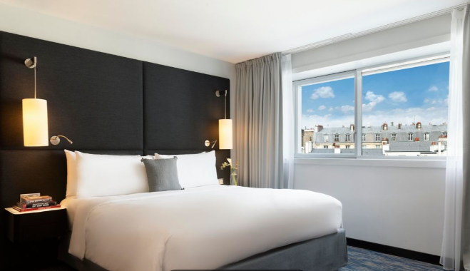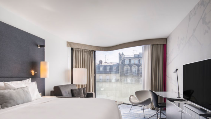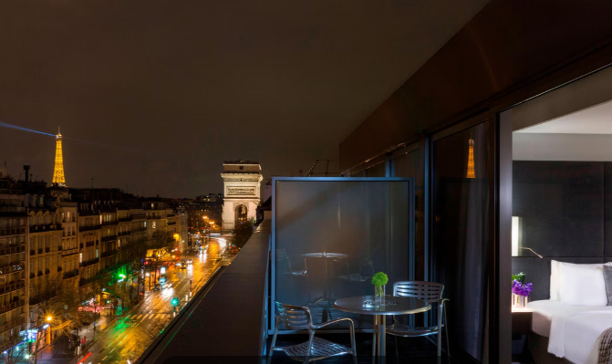 Насолоджуйтеся розкішшю просторих номерів у паризькій Тріумфальній арці епохи Відродження, розташованій у жвавому 17-му районі. Відкрийте для себе 118 світлих і просторих номерів і люксів із великими вікнами, з яких відкривається захоплюючий вид на Париж. Зробіть свій відпочинок кращим за допомогою наших люксів із приватними терасами, які ідеально підходять для романтичної подорожі, медового місяця або сімейного відпочинку. У кожному номері є продуманий набір із чаєм і кавоваркою Nespresso, розкішна постільна білизна для спокійного сну, тапочки, плюшеві халати та підключені смарт-телевізори. Насолодіться зручністю обслуговування номерів, яке подається прямо у ваш номер або на вашому приватному балконі чи терасі.