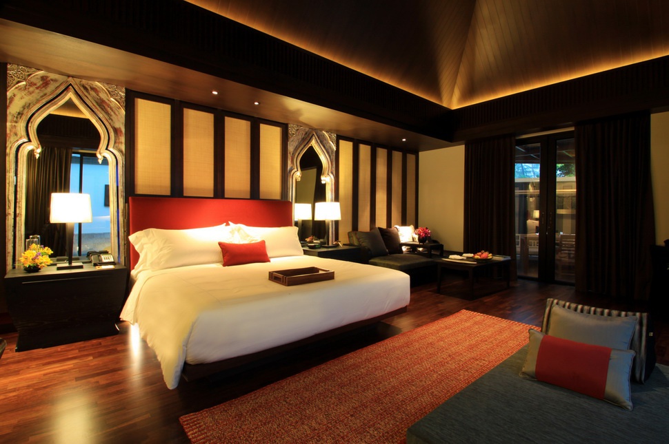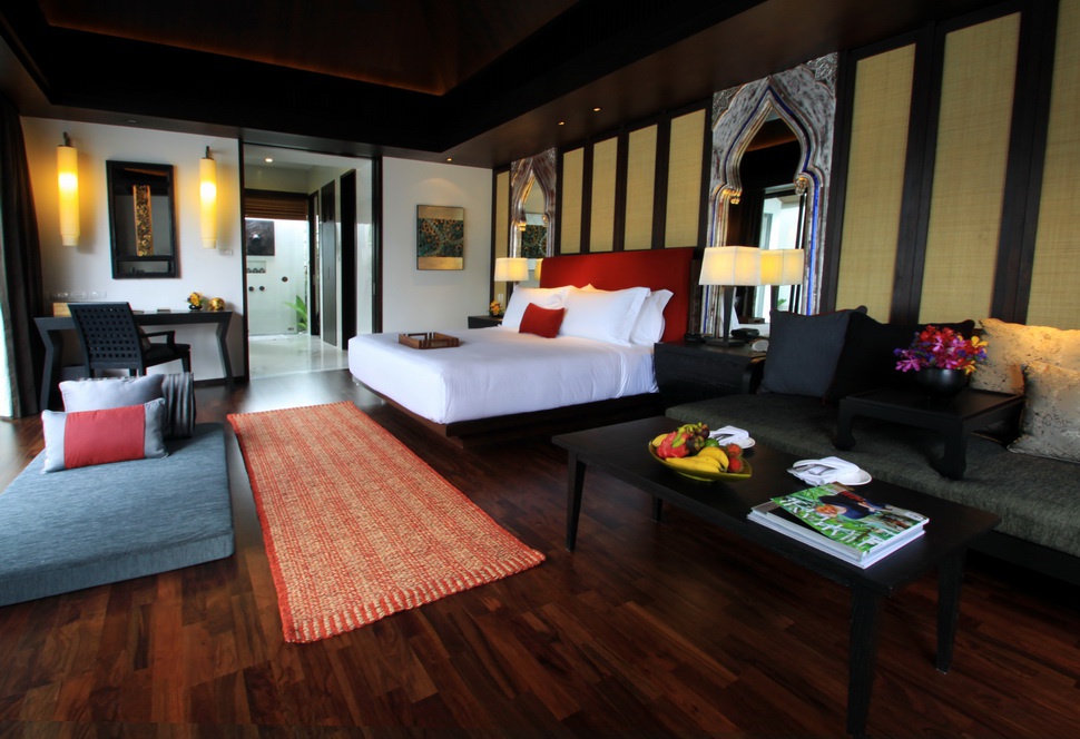 Спальня з окремою робочою зоною і телевізором, вітальня, кафетерія, ванна кімната з свіжим повітрям і двома душовими кабінами (один відкритий), повністю обладнана кухня, патіо, їдальня, приватний басейн і garden view.Однокімнатний Beachfront Pool Villa: 153 м2; розташований на пляжі; має приватний сад і прямий вхід до пляжу; складається з спальні, вітальні зони, кафетерії, ванної кімнати з harbor, санвузлом і двома душовими кабінами (один відкритий), повністю обладнані кухні, арраз з патіо, кафетерії, приватного басейну довжиною 8 м і вбудованим сидінням. З'єднання вілли.